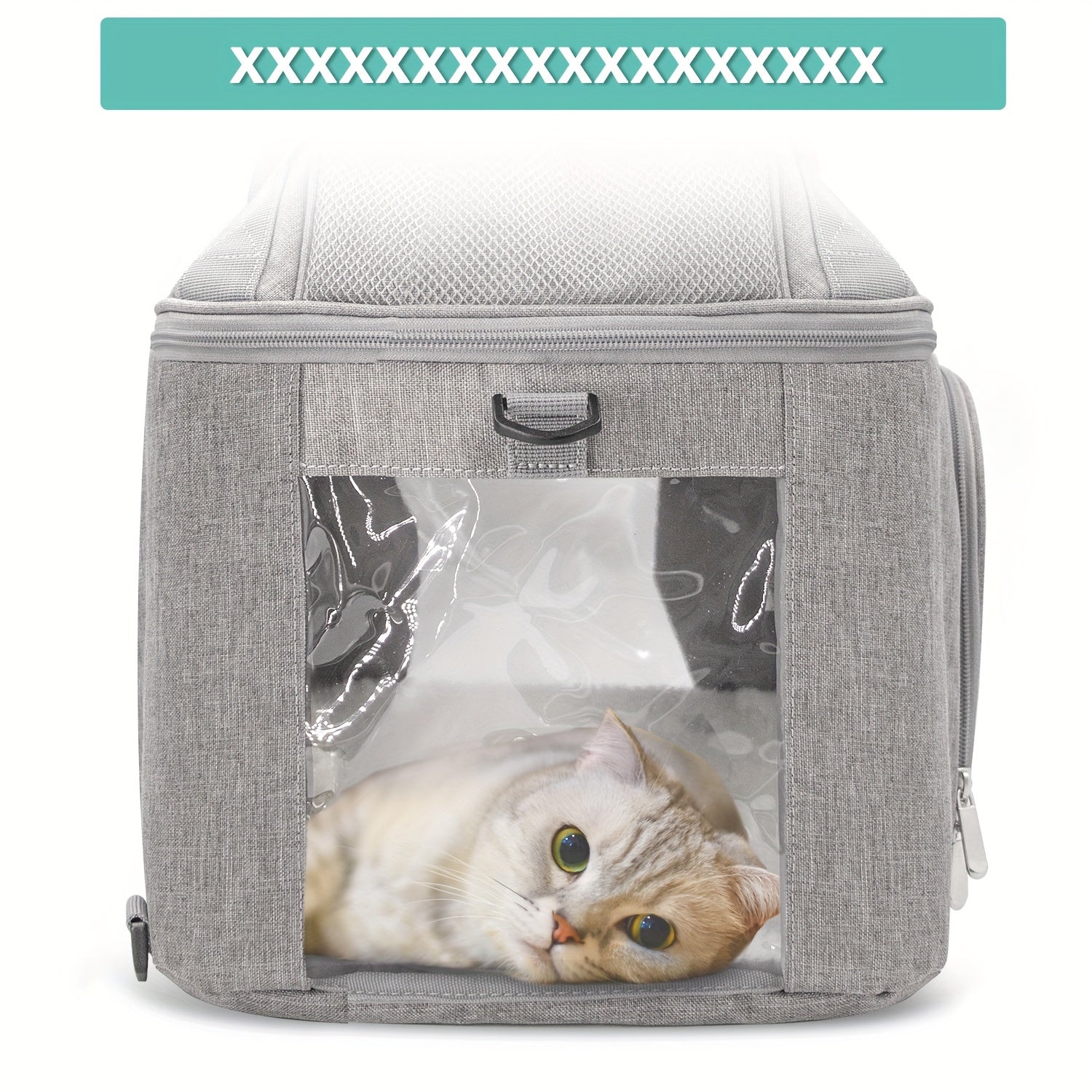 Durable Gray Polyester Pet Carrier Bag for Dogs and Cats with Zipper Closure