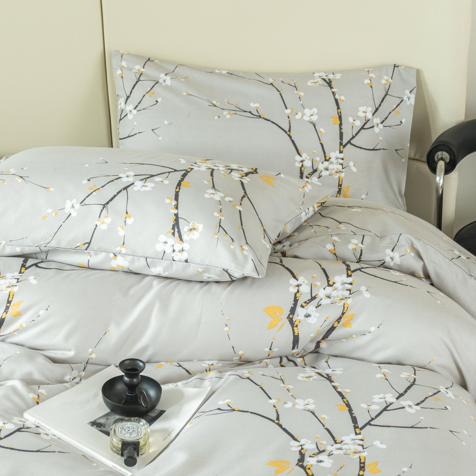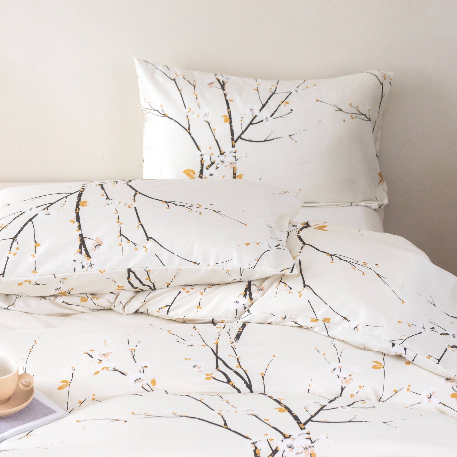 Flower Print Duvet Cover Set with Pillowcases Soft Bedding for Bedroom or Guest Room