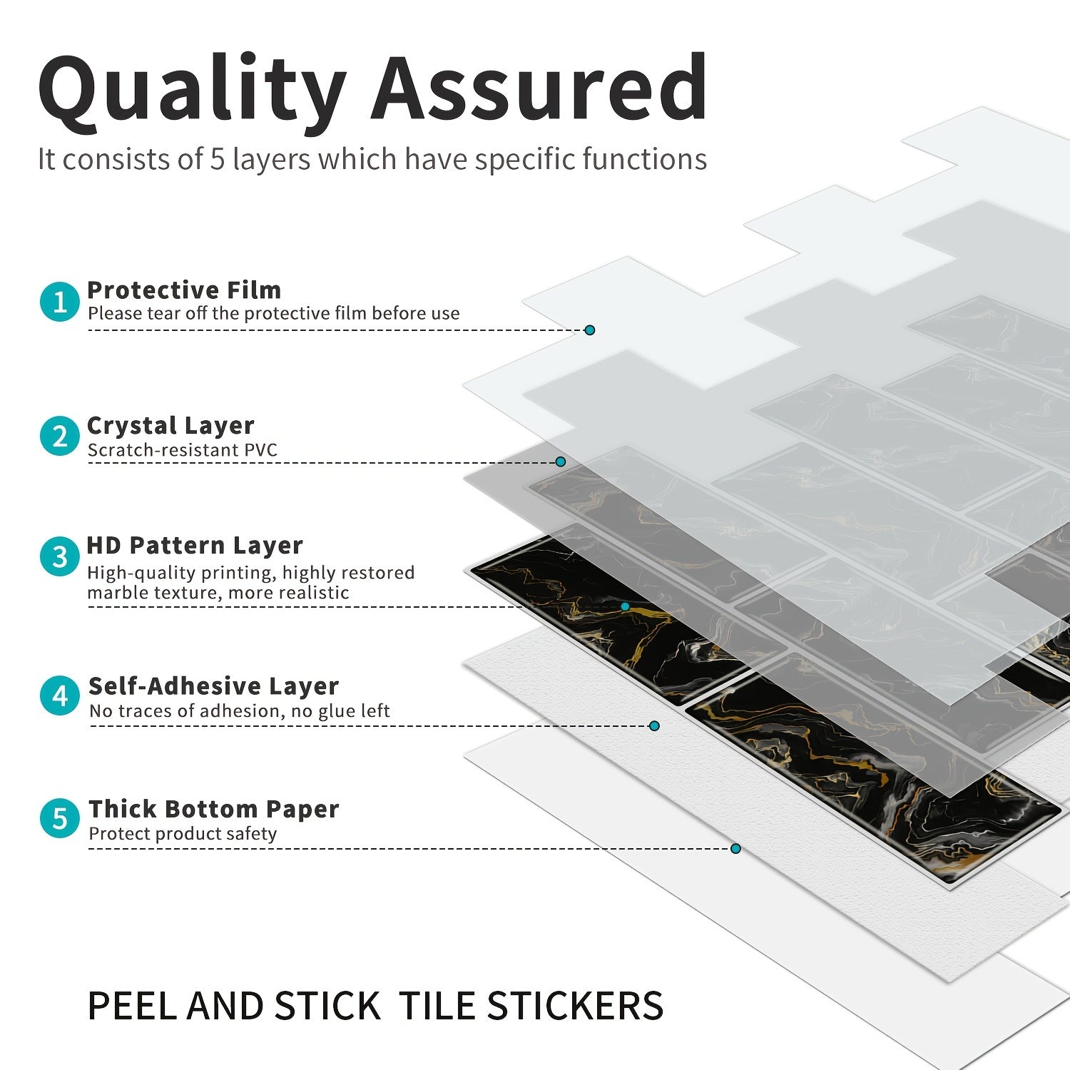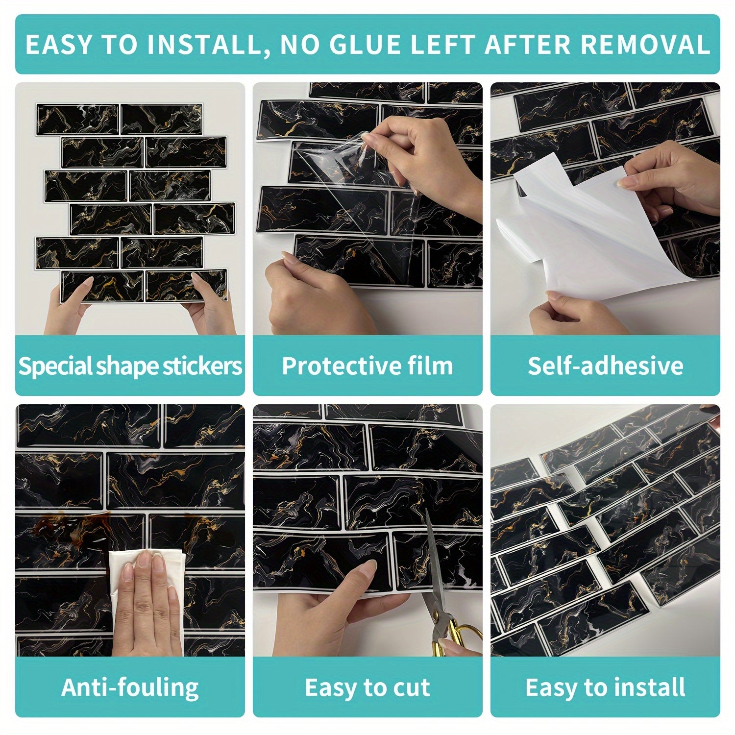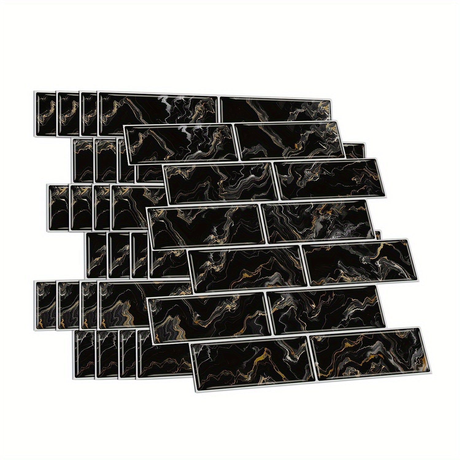 12 Pieces Black and Gold Quicksand Brick Pattern Mosaic Wall Tile Stickers 30.48cm x 30.48cm Waterproof Self-Adhesive