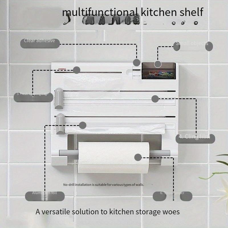 Kitchen Organizer with Plastic Wrap Dispenser and Cutter for Food Storage