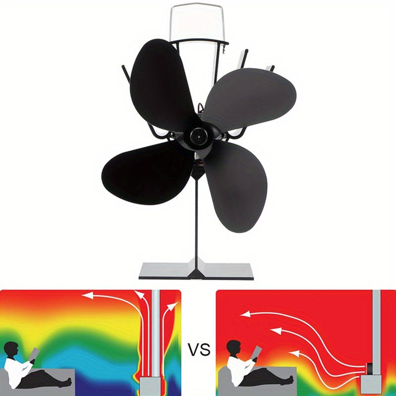 4-Blade Quiet Wood Stove Fan Portable Fireplace Log Burner Heat Powered