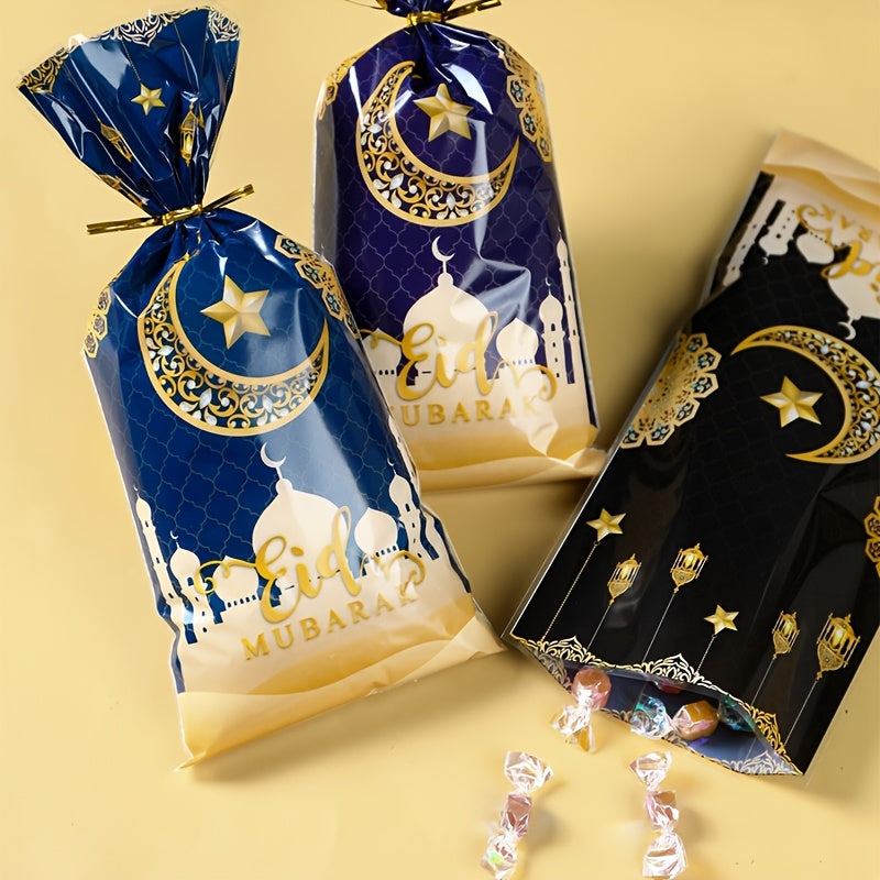 Eid Mubarak Candy Bags Set of 25 50 or 100 Black White Blue Plastic Ramadan Eid Decorations