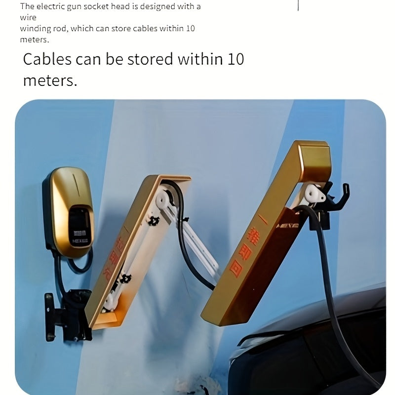 Electric Car Charging Cable Arm Bracket Adjustable Push-Pull Design White Gold Storage Slots
