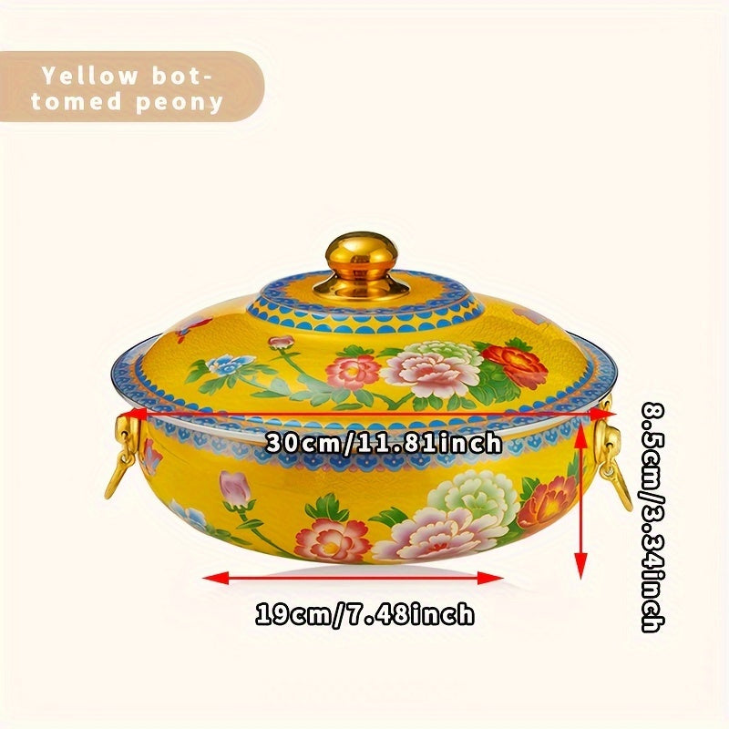 Electric Magnetic Stove Hot Pot 30cm Pure Copper Enamel Blue Red Flower Suitable for 2-3 People