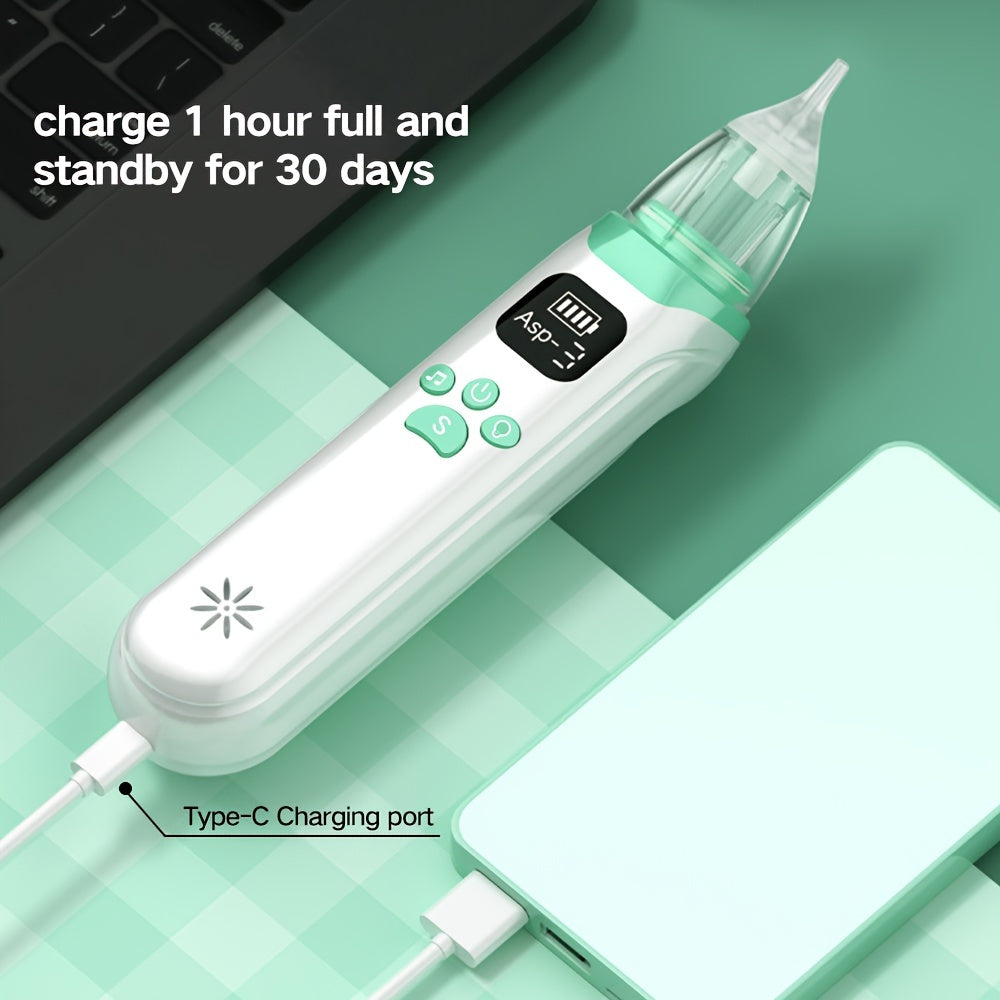 Electric Nasal Cleaner with Adjustable Modes Silicone Nose Sucker Tweezers Straw Brush Green