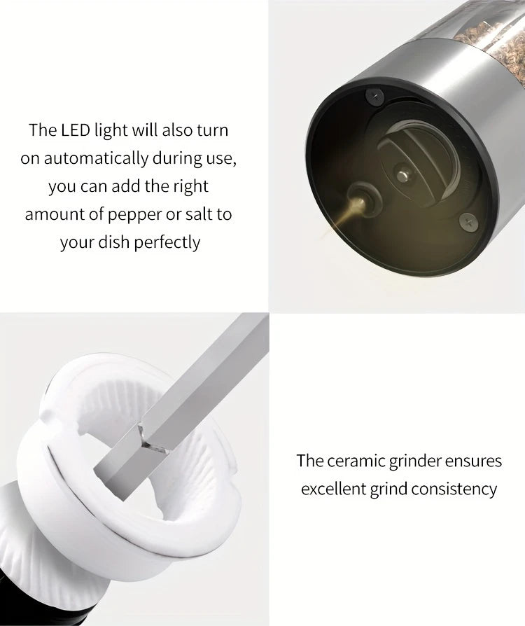 Electric pepper salt grinder set stainless steel clear bin battery operated for home holiday gifts