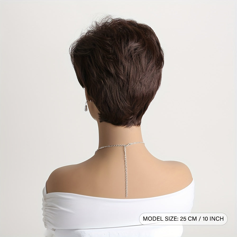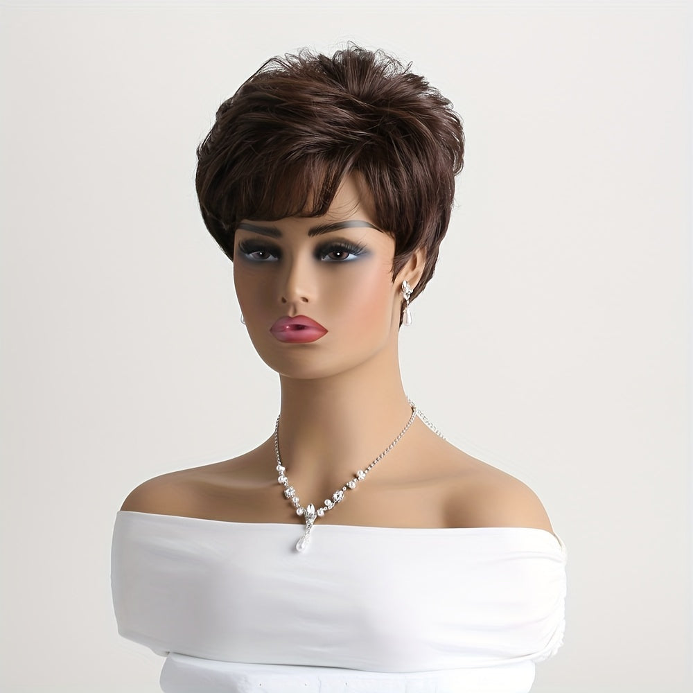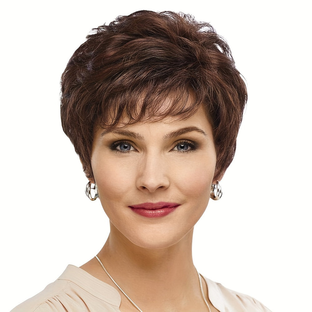 Women’s 10-Inch Synthetic Brown Curly Wig with Side Bangs for Daily Wear