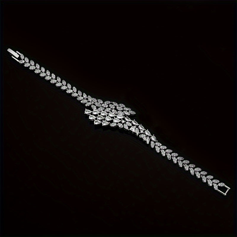 Elegant Platinum-Plated Zirconia Bridal Jewelry Set Necklace Earrings Bracelet Ring for Weddings
