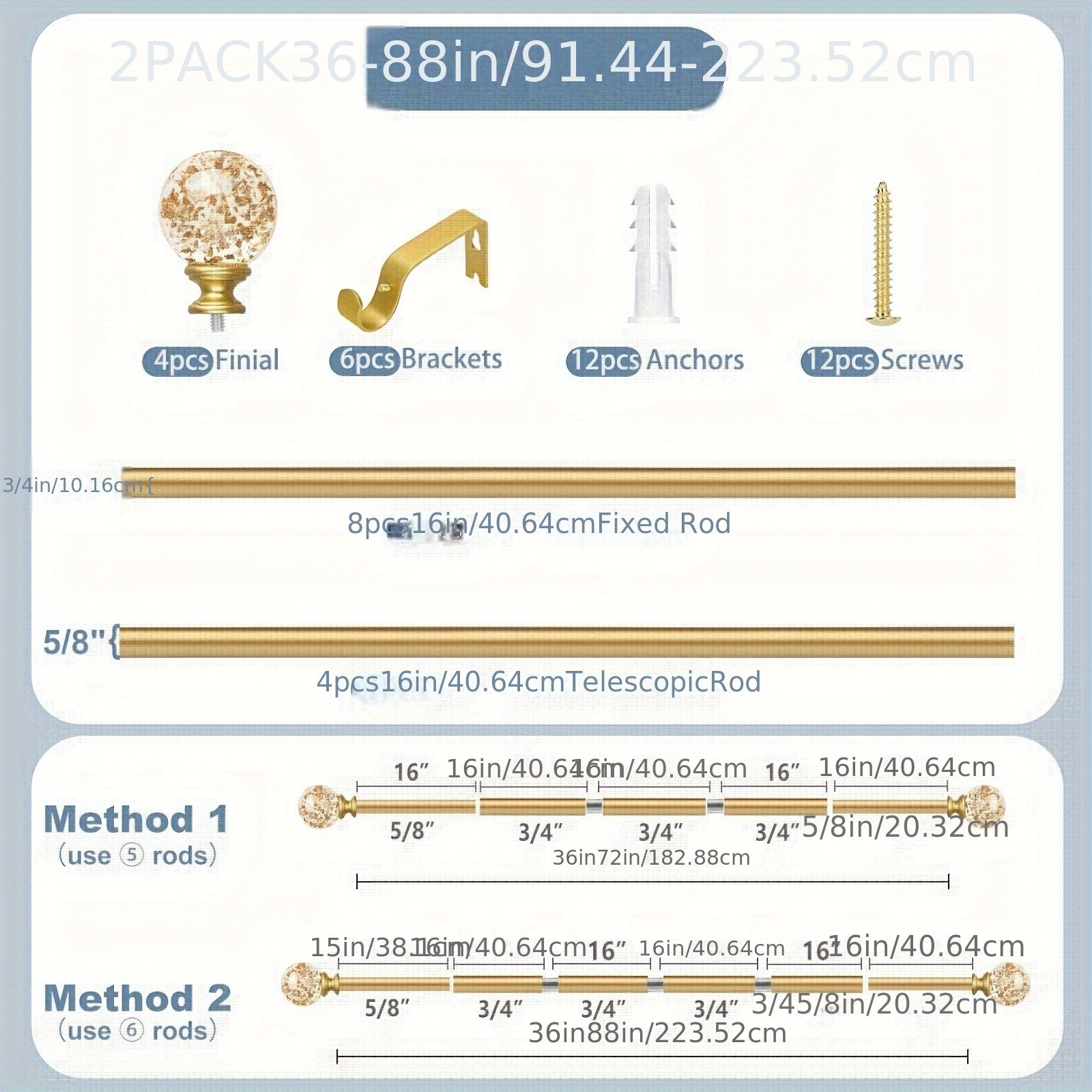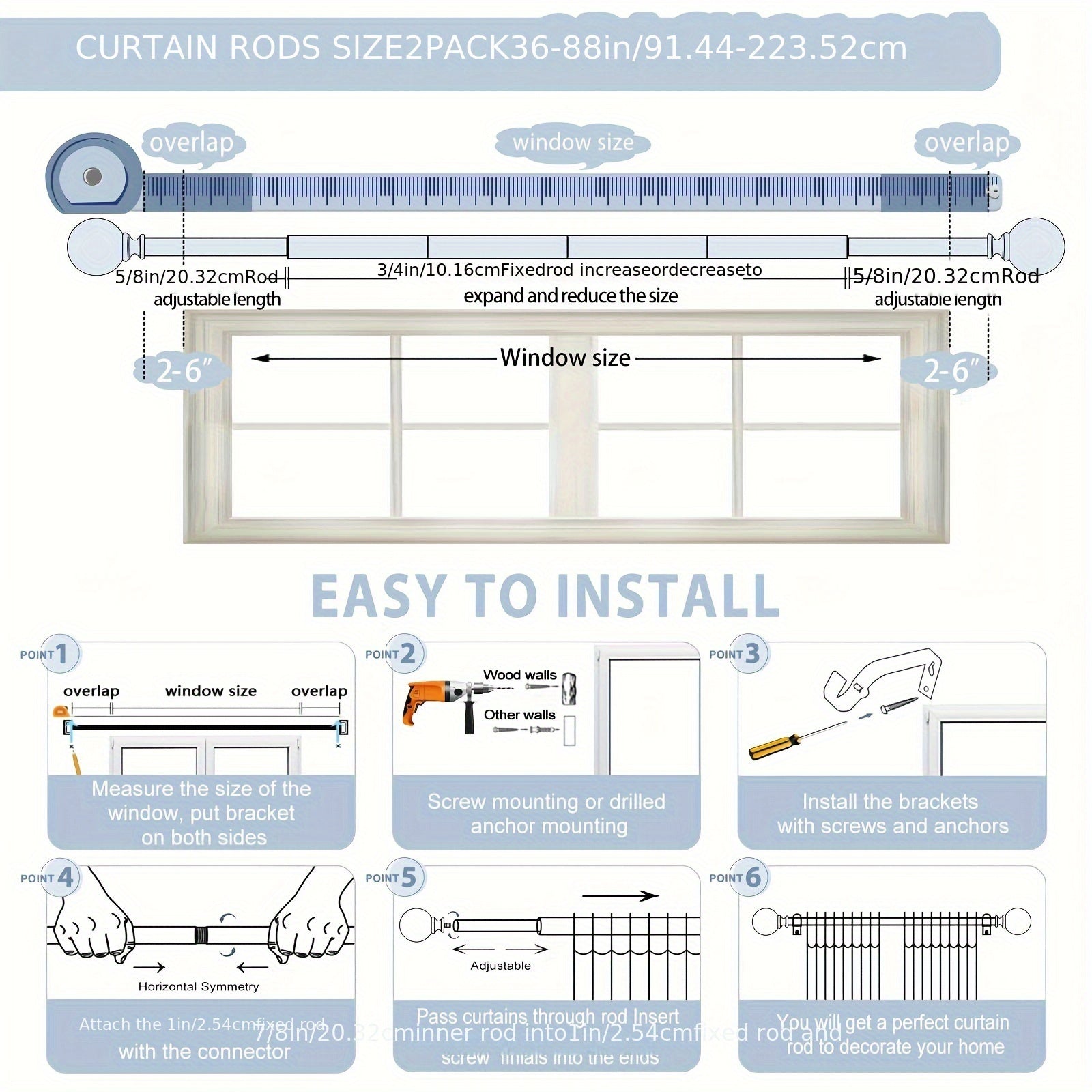 Elegant Metal Curtain Rod for Living Room Bedroom Kitchen Hallway 28-48 Inches