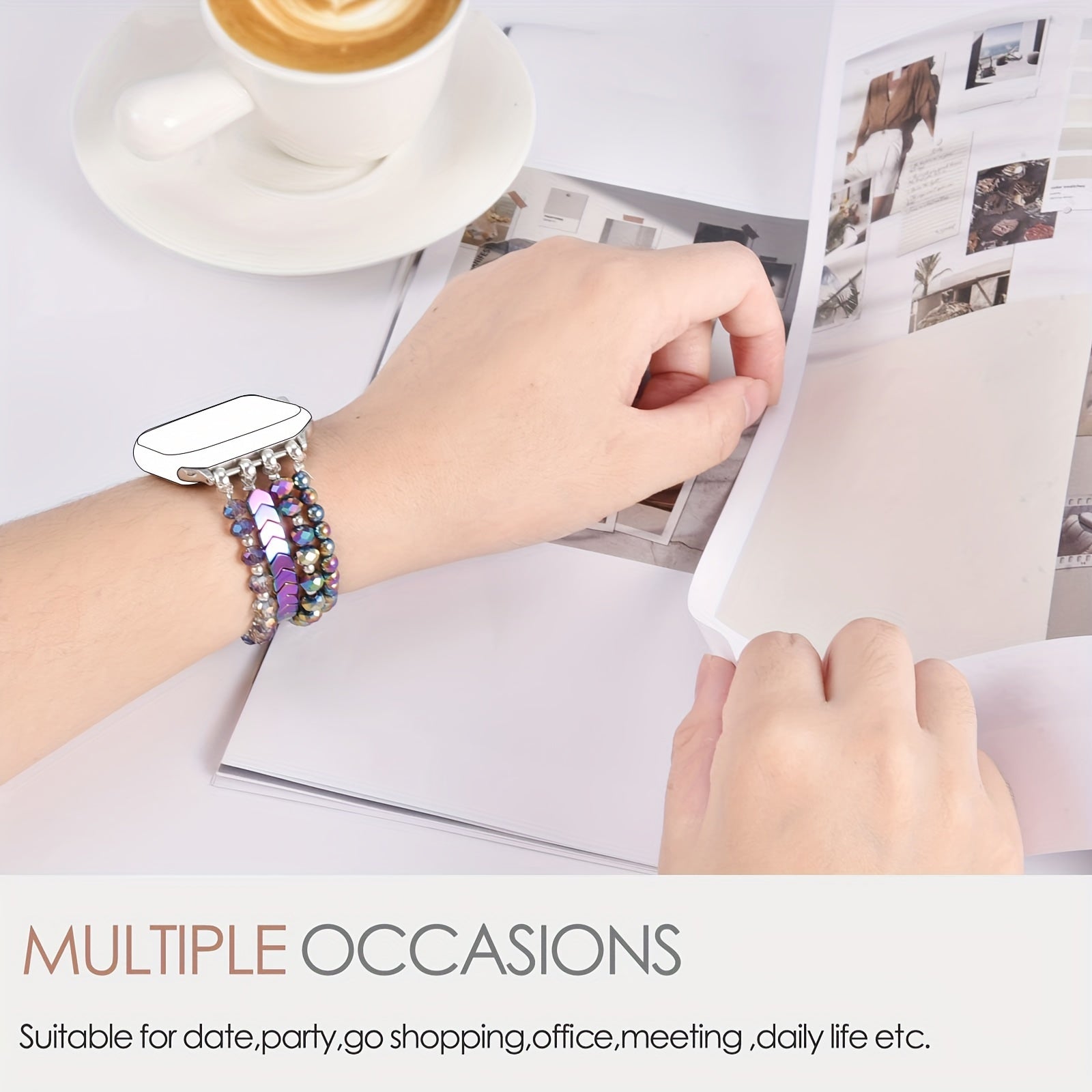 Beaded Resin Elastic Watch Band for Apple Watch 38mm-45mm Compatible with Series SE to 1