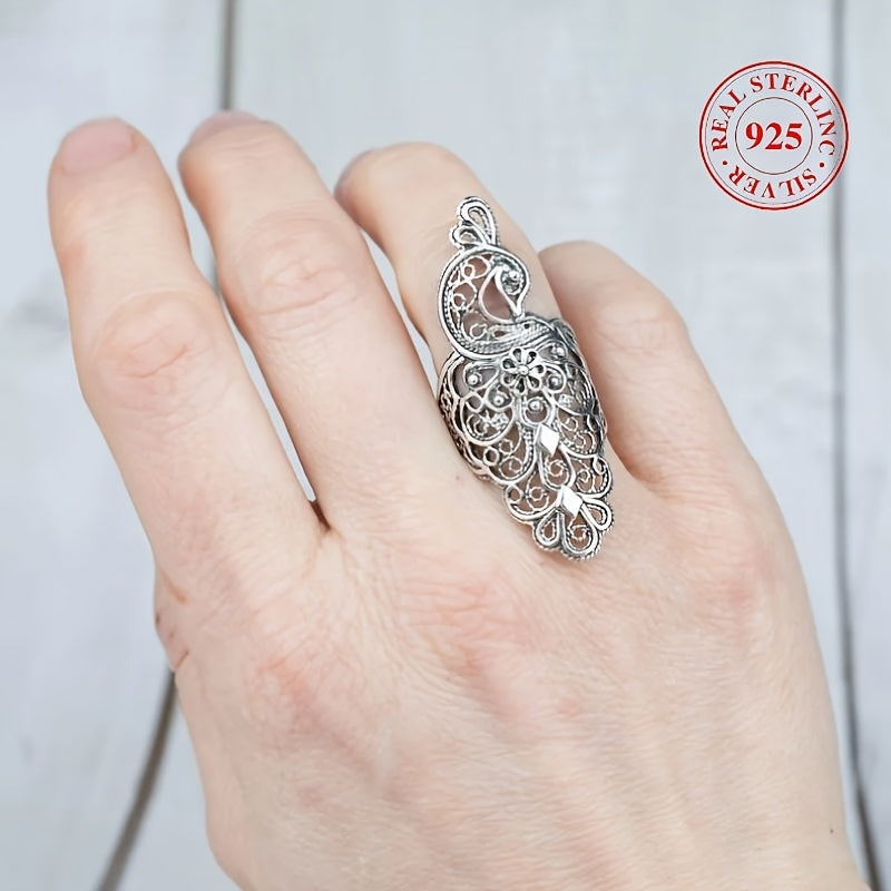 Sterling Silver Peacock Hollow Ring Bohemian Style Wedding Anniversary Gift
