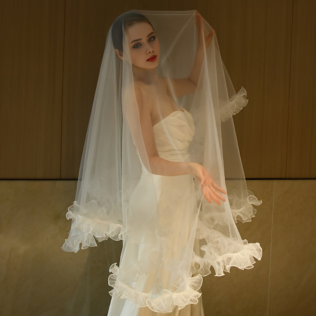 Elegant Bridal Veil Nylon Scalloped Edge Wedding Accessory Hand Washable