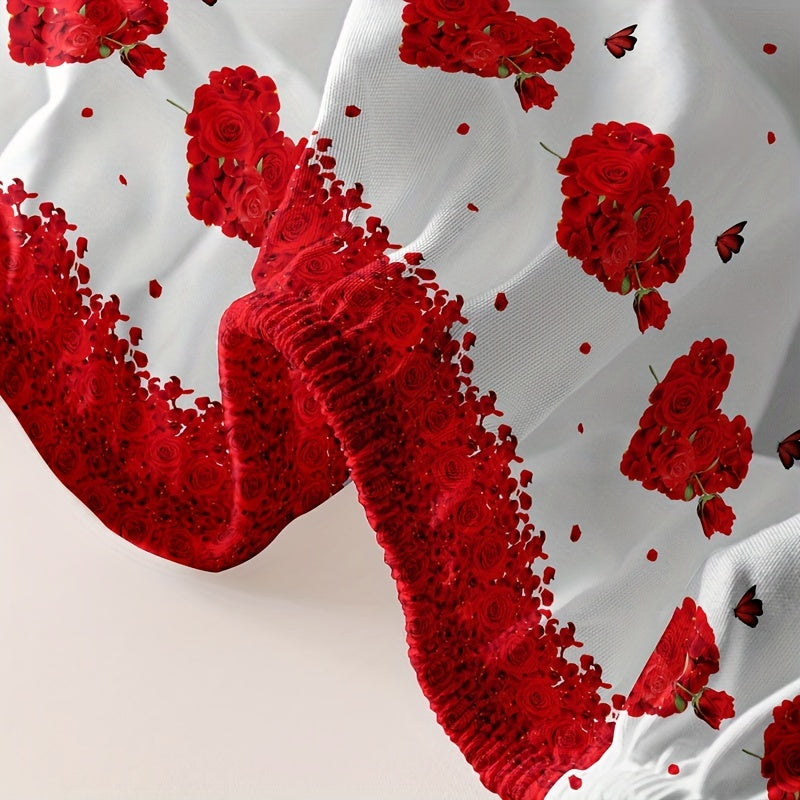 Fitted Sheet with Romantic Rose and Heart Print Deep Pockets Easy Wash for Bedroom Guest Room
