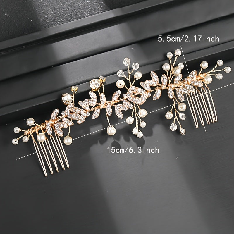 Elegant Floral Wedding Chignon Plate Hair Accessory Rhinestones Pearls for Brides