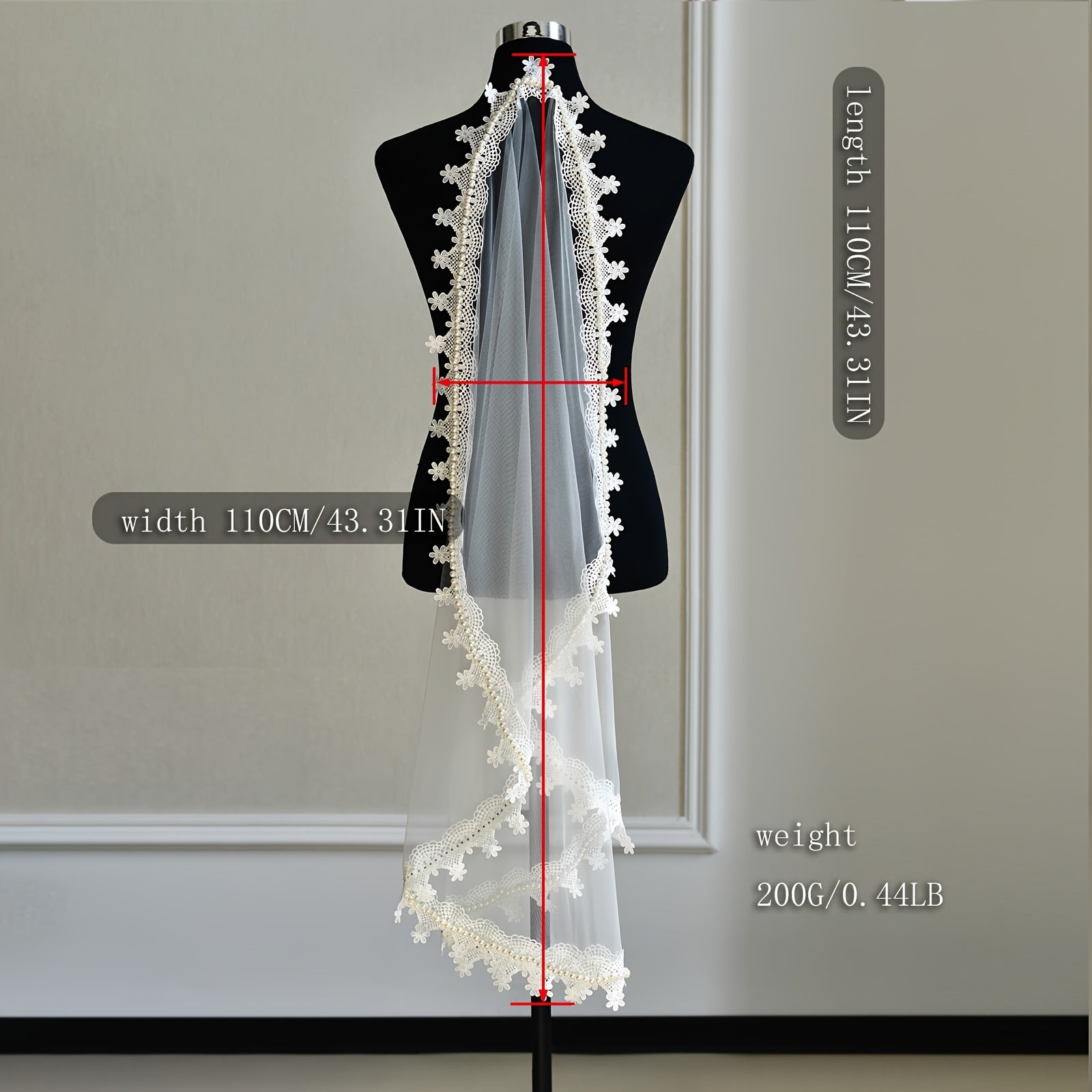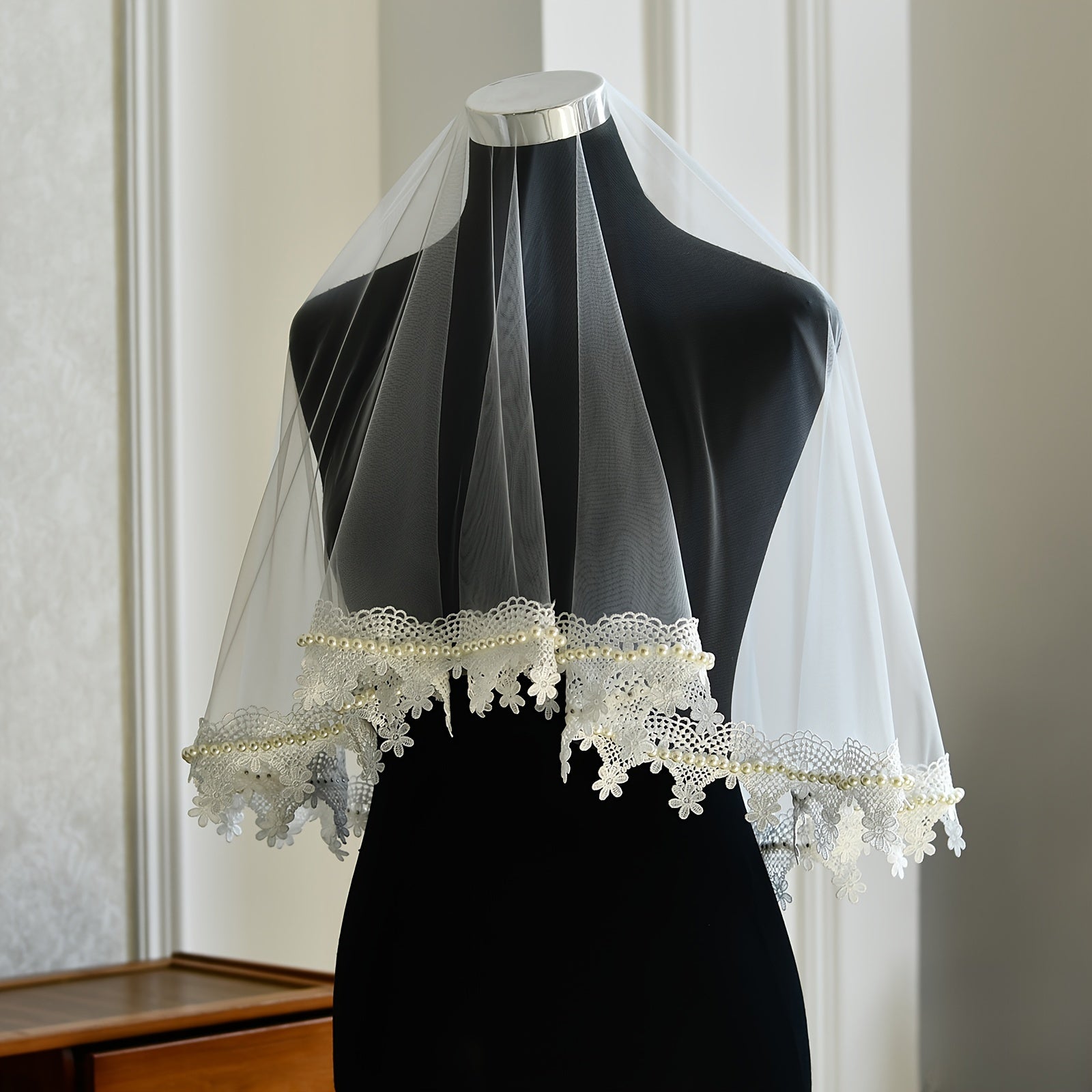 Bridal Lace Veil Wedding Dress Hair Accessories Single Layer Beaded Detail