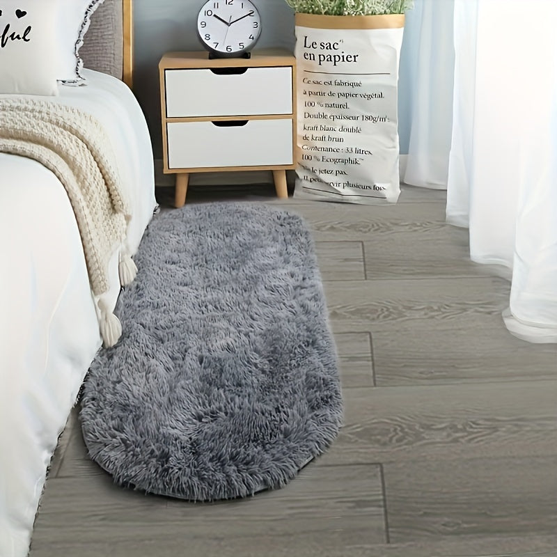 Light Gray Oval Area Rug Soft Plush Polyester Bedroom Living Room Decor