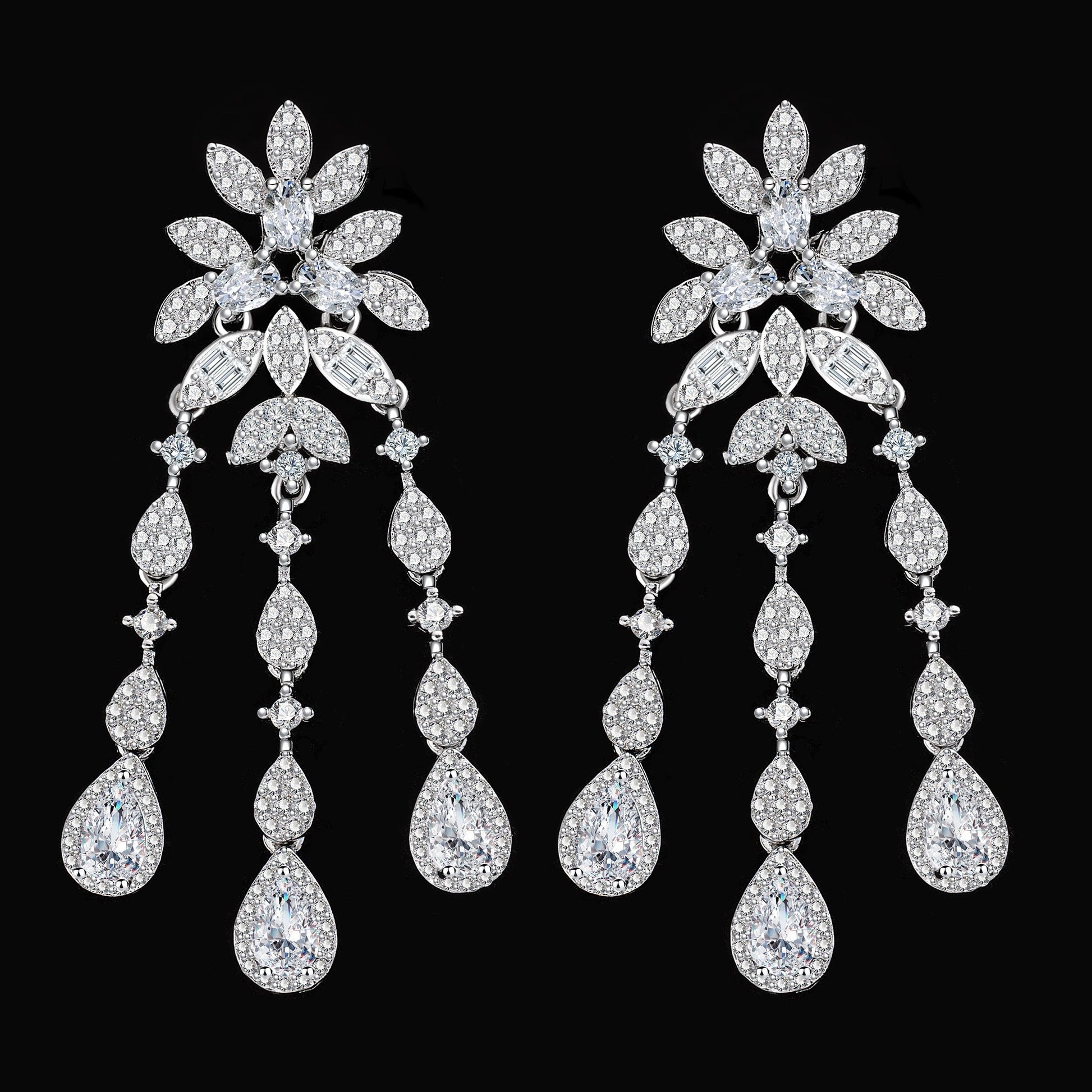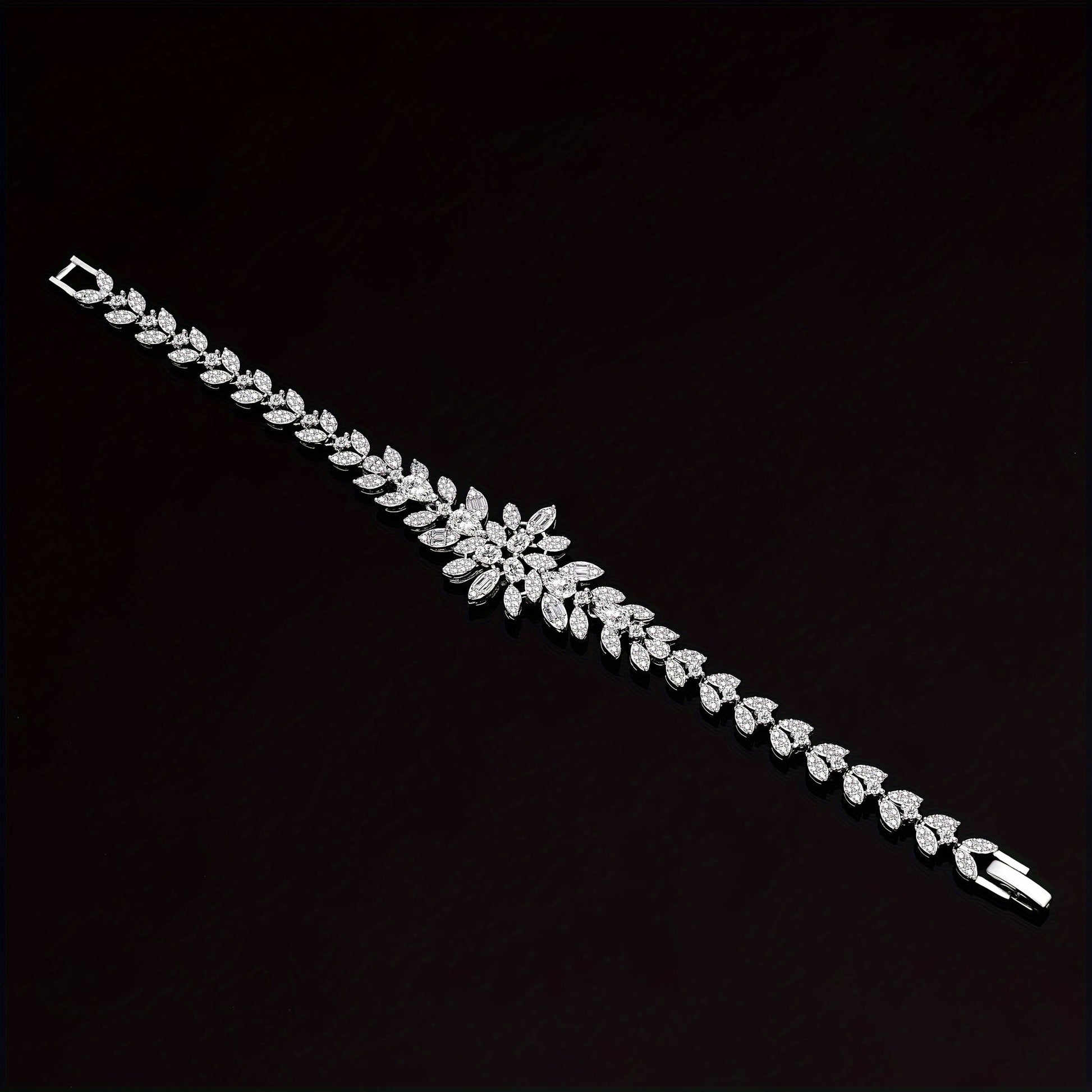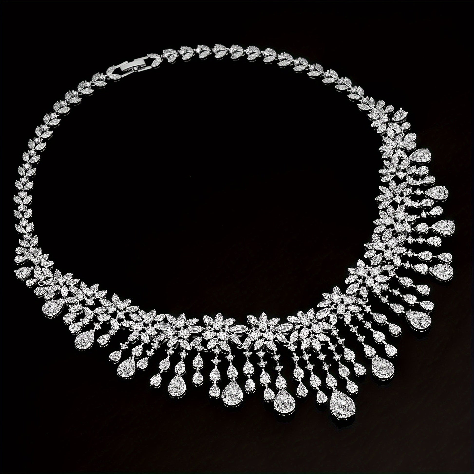 Platinum Plated Copper Bridal Jewelry Set with Zirconia Necklace Bracelet Earrings
