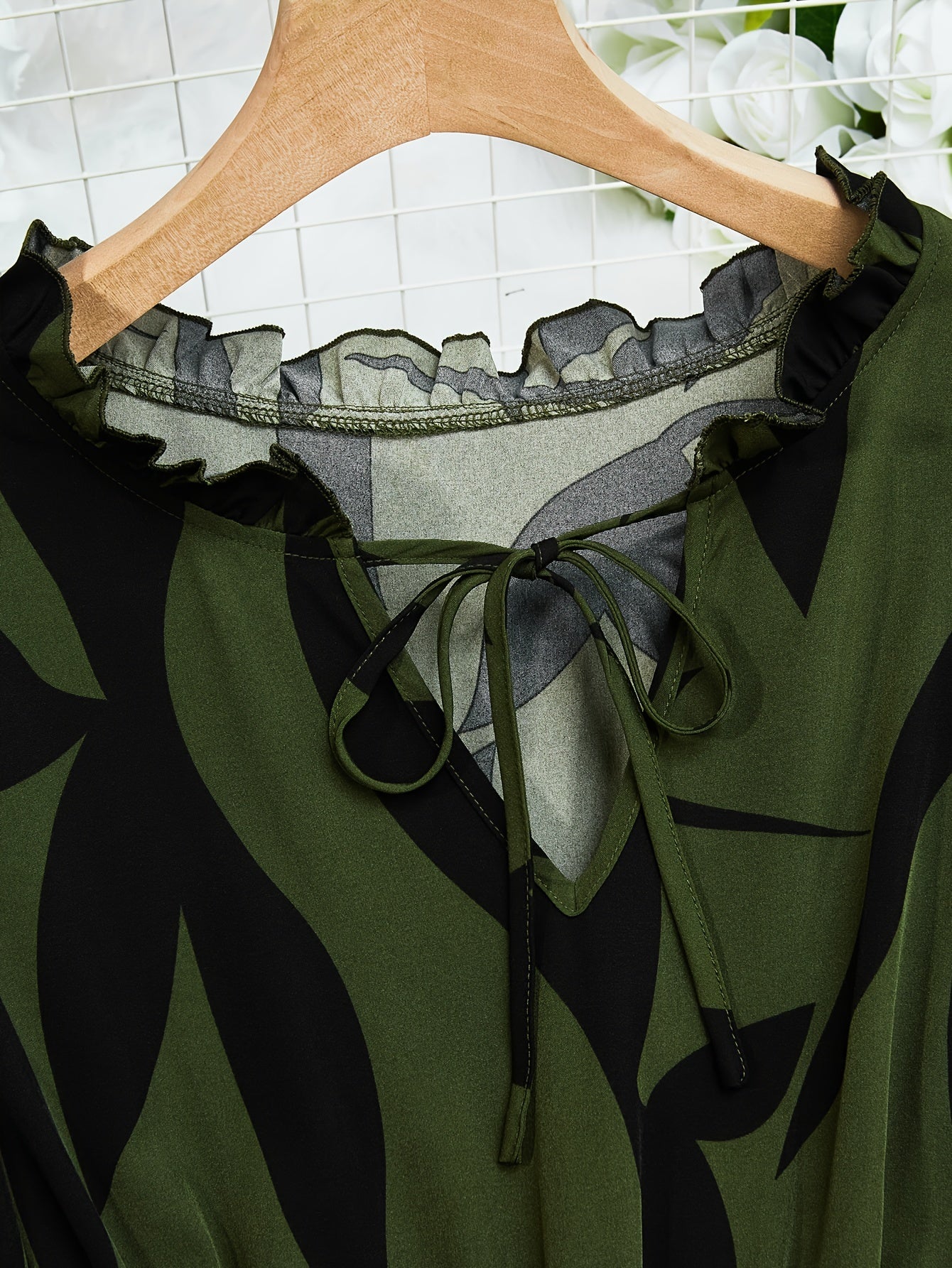 Plus Size V-Neck Dress with Puff Sleeves Pleated Fit and Flare All-Season
