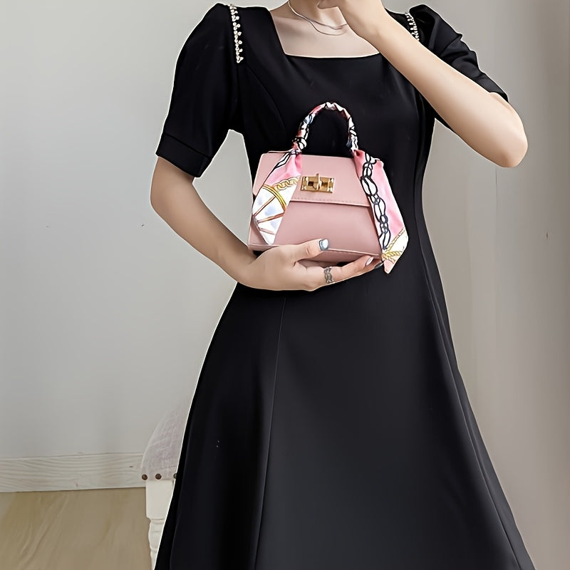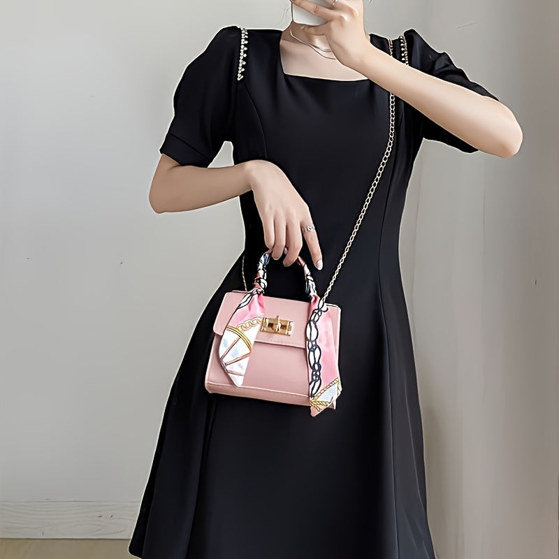 Women's PU Leather Crossbody Bag with Geometric Print and Scarf Accent