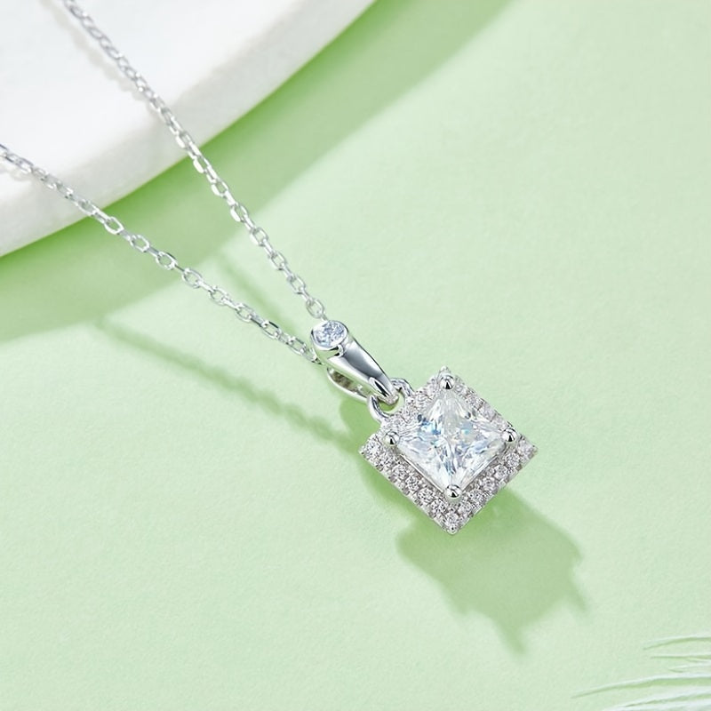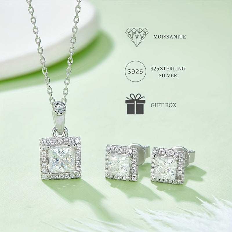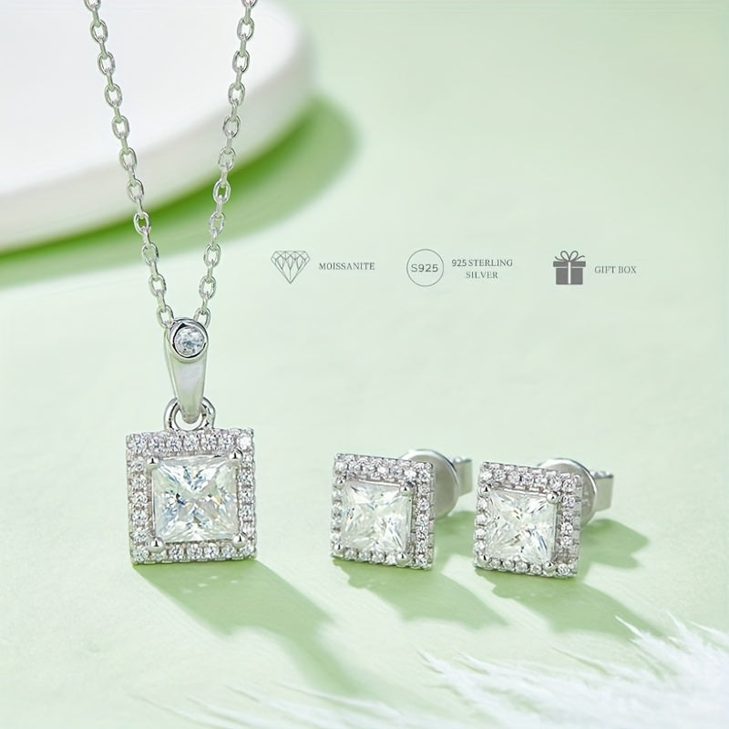 Silver Moissanite Pendant Necklace and Earring Set for Women Unisex Jewelry