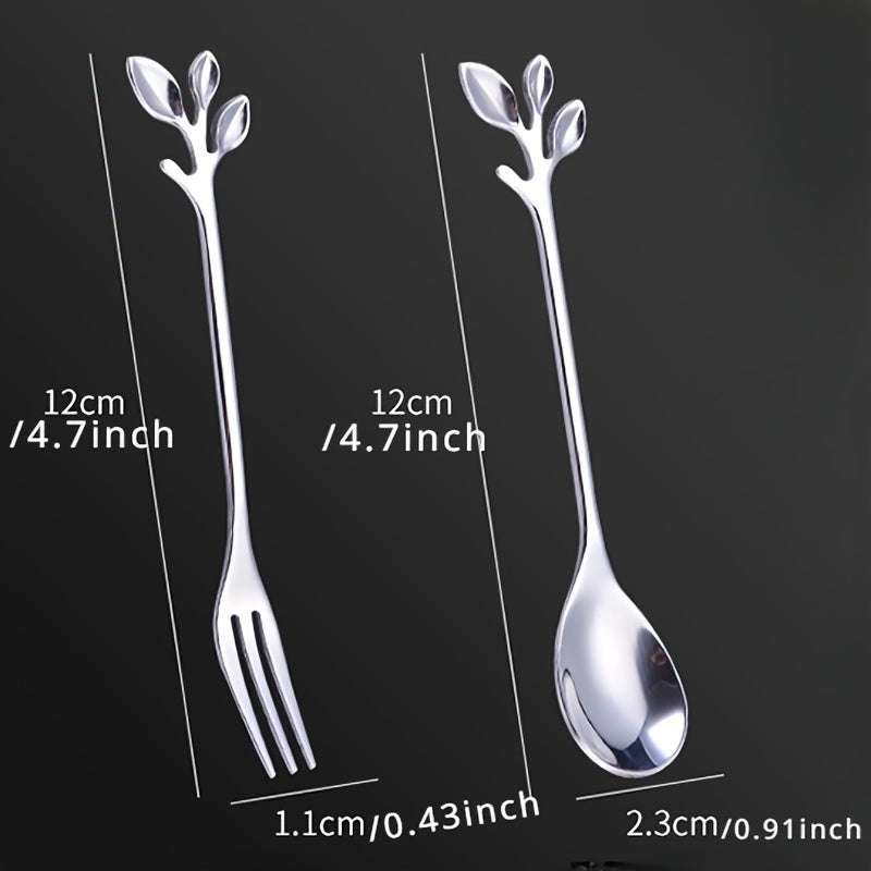 Stainless Steel Cutlery Set with Leaf Design Spoons for Tea Desserts and Drinks
