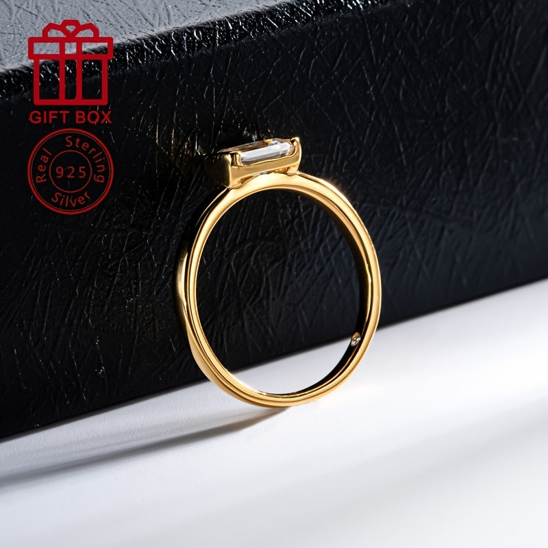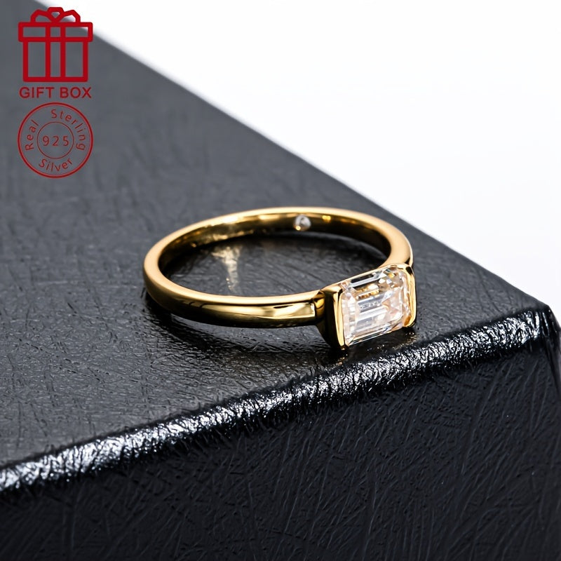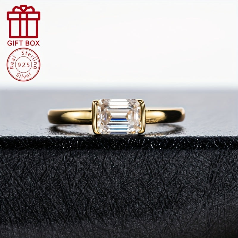Sterling Silver Moissanite Ring 1CT Emerald Cut Wedding Engagement Anniversary Jewelry