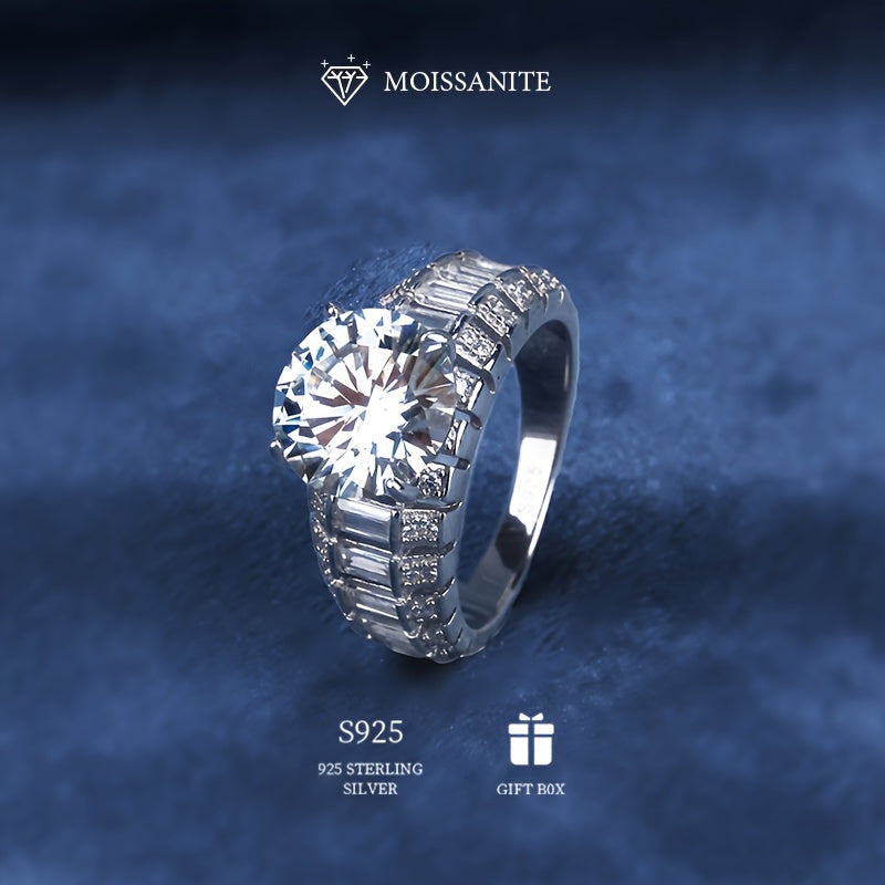 Vintage Sterling Silver Moissanite Ring 3-5ct Bridal Engagement Gift-Ready