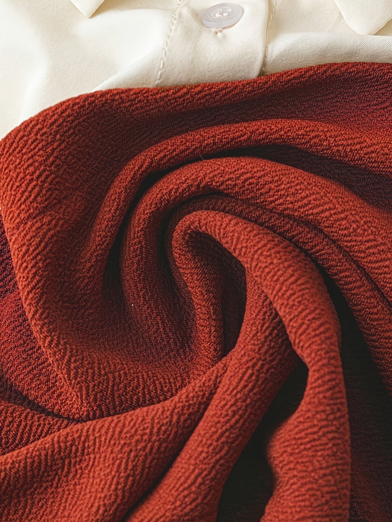 Women's Two-Piece Set in Burgundy and White Polyester Spring Fall Elegant
