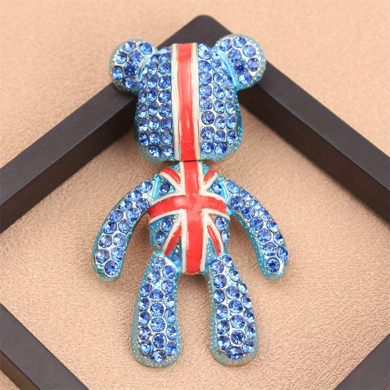 Luxurious UK Union Jack Rhinestone Encrusted Bear Brooch Pin for Clothing Bags Hats