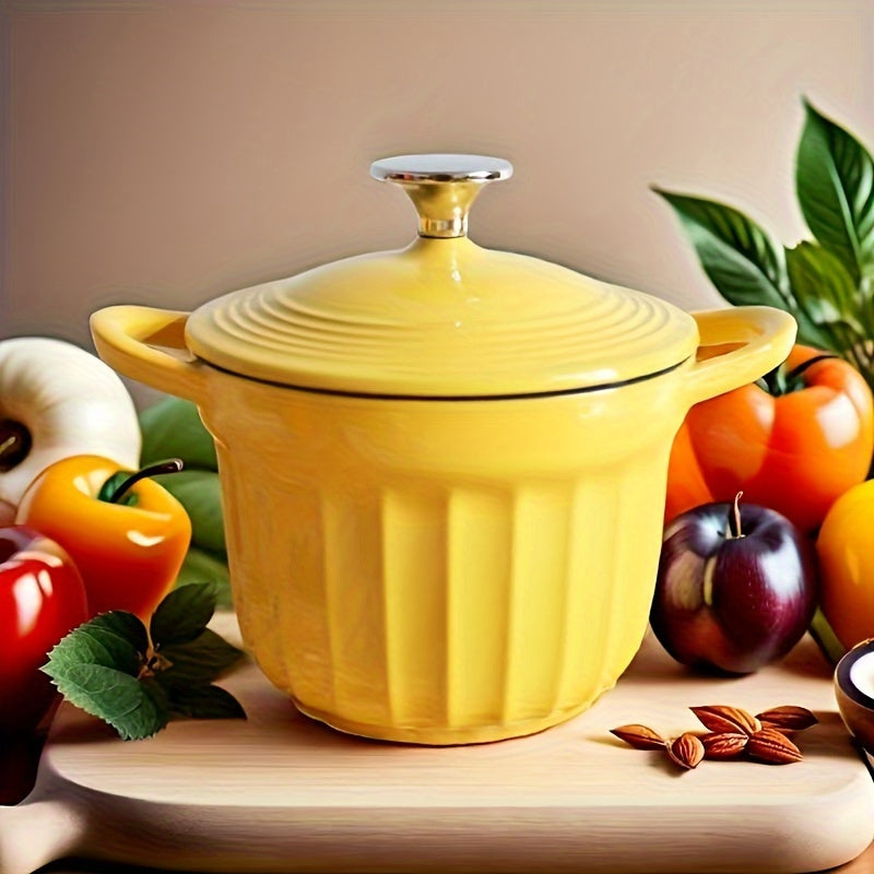 Enamel Cast Iron Dutch Oven Pot with Lid Non-Stick Induction Compatible 1 Piece