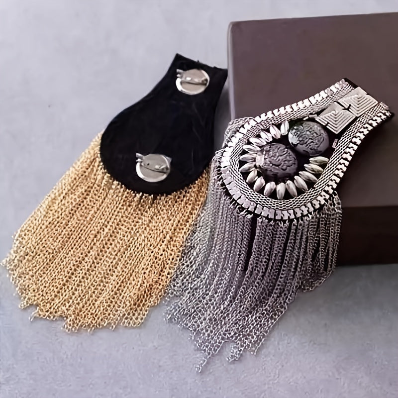 Unisex European and American Suit Brooches with Rivets Tassels and Epaulettes