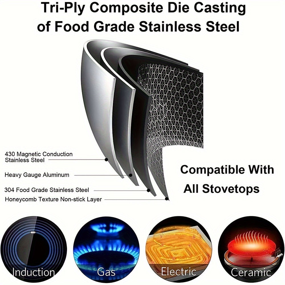 Tri-Ply Stainless Steel Frying Pan with Glass Lid, Dishwasher Safe, Versatile Cookware