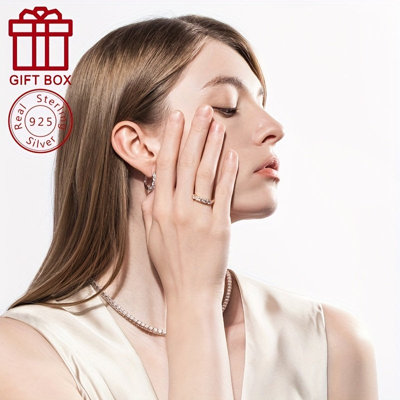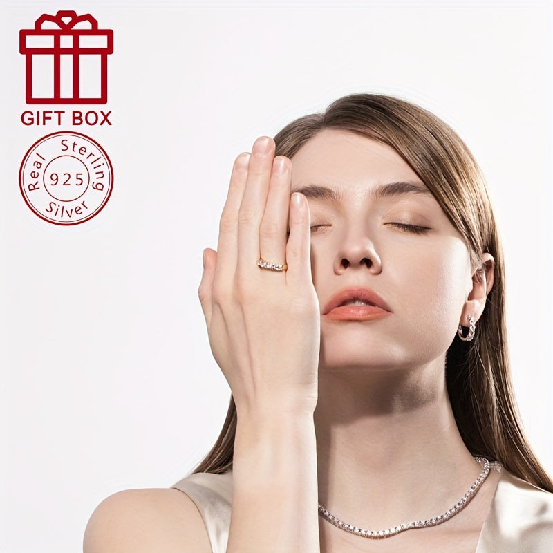 Silver Moissanite Anniversary Ring 14K Gold Plated 1.5CT Engagement Band for Women