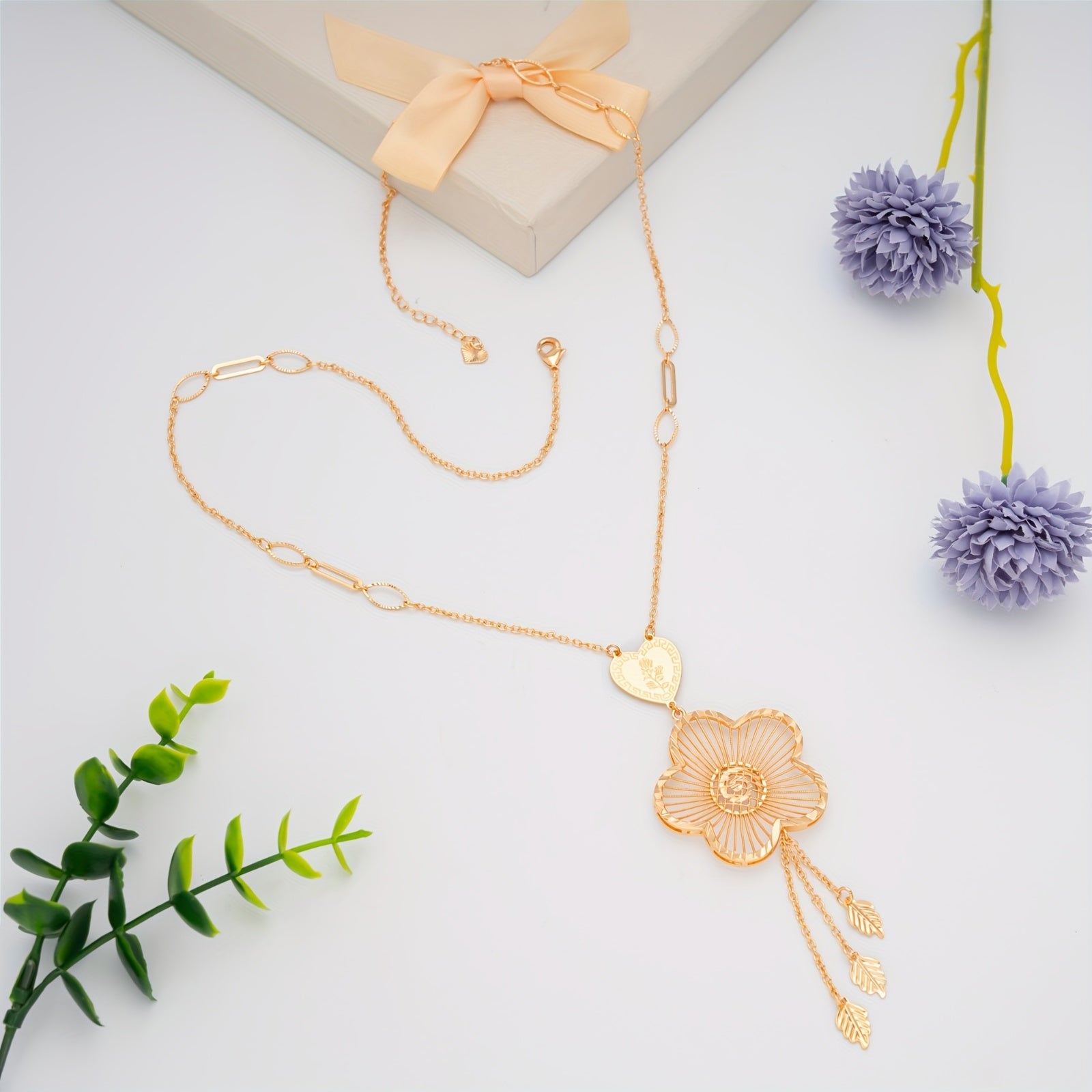 Jewelry Set 3-Piece Arabian Style Gold Flower Pendant Necklace Earrings for Ramadan Weddings Parties