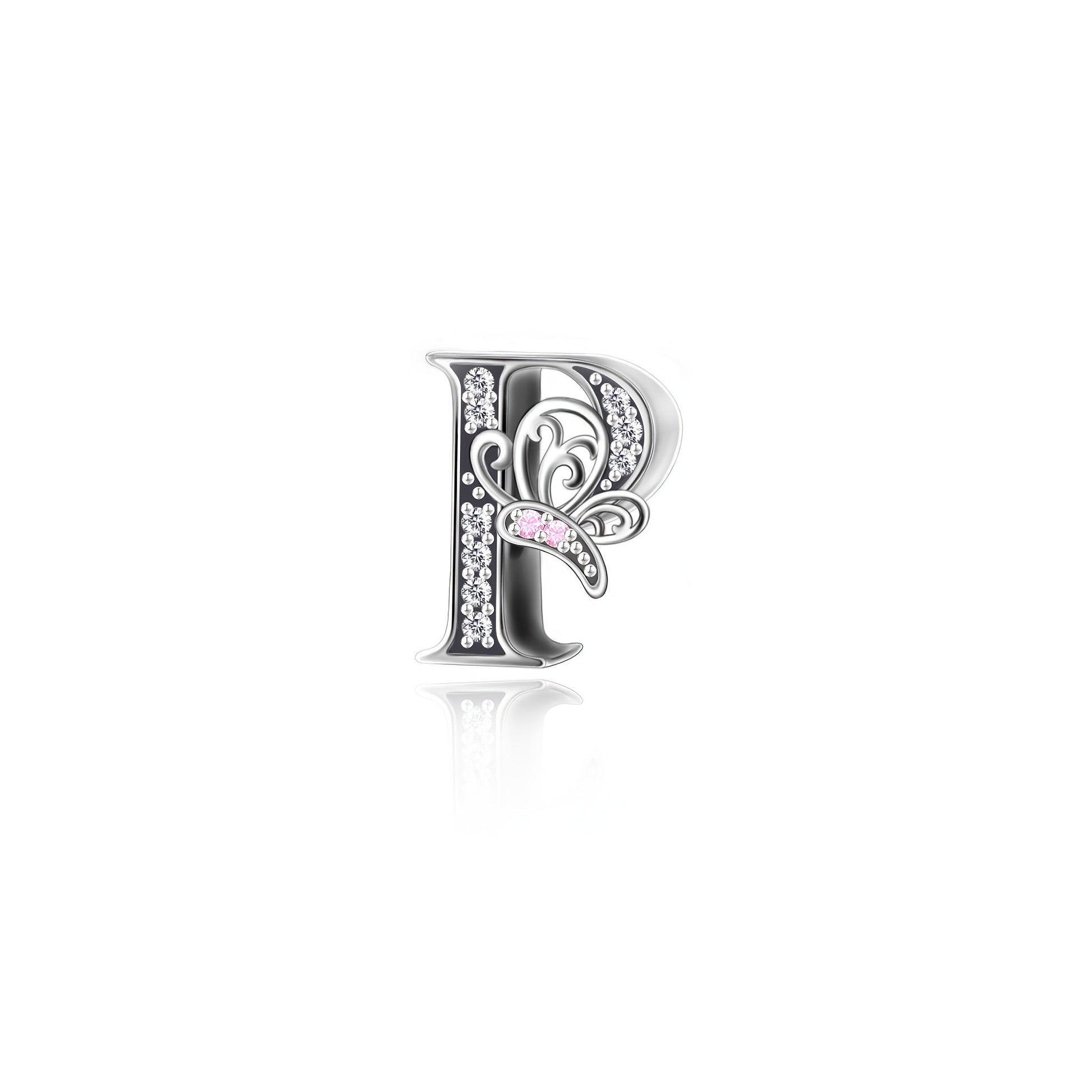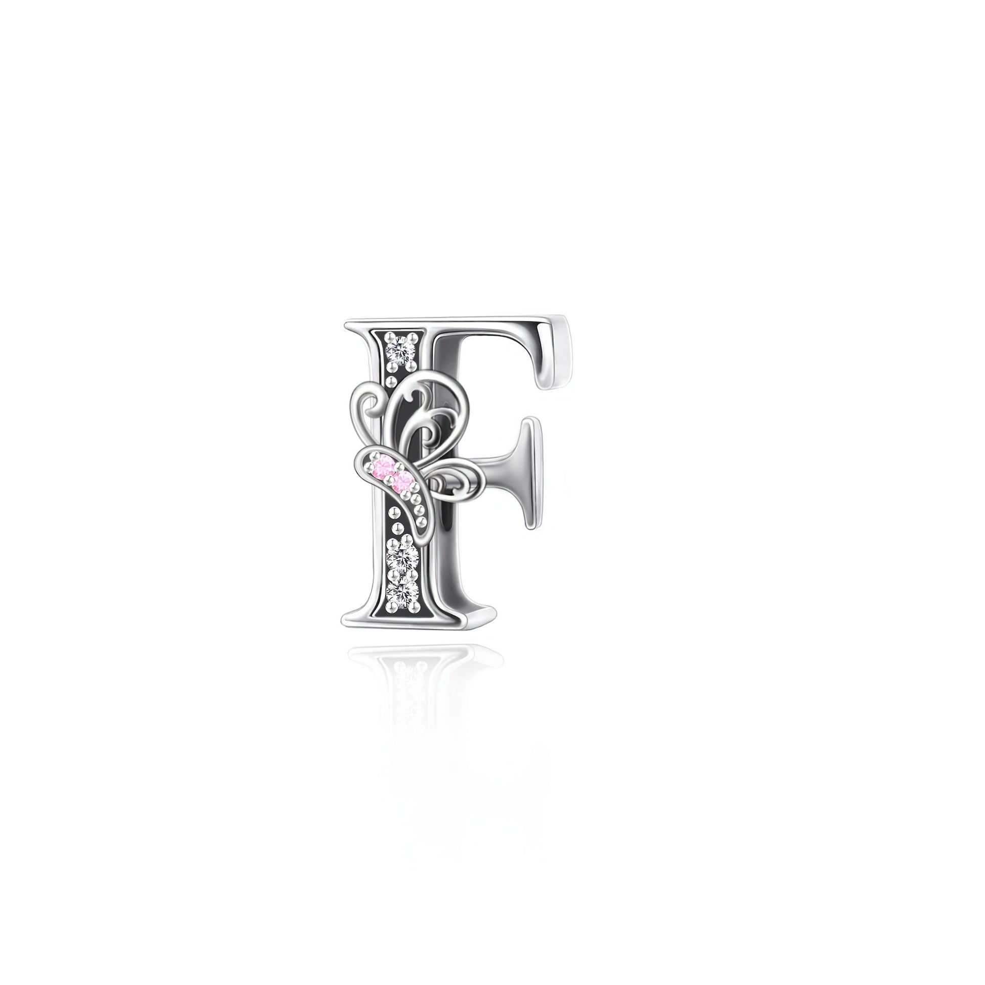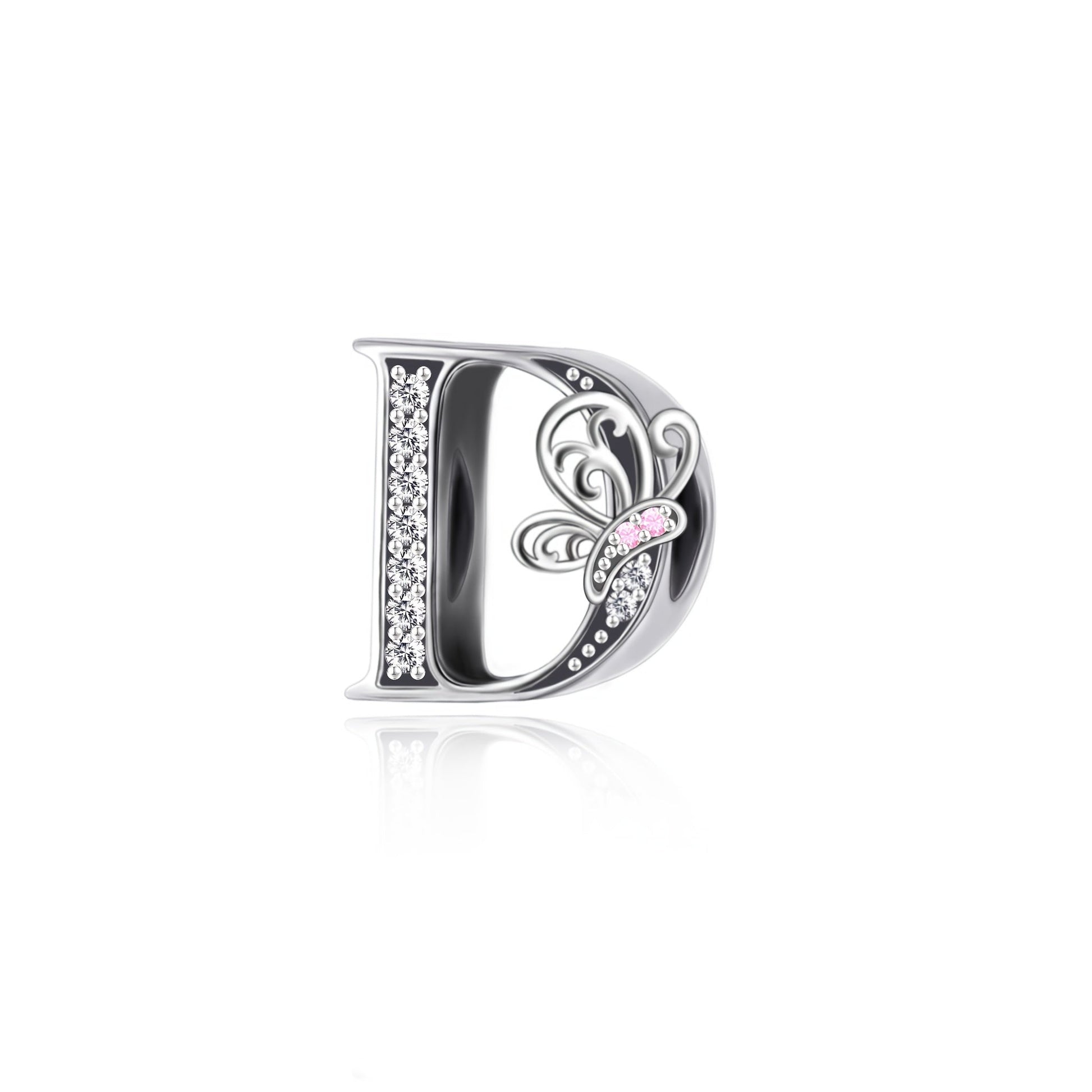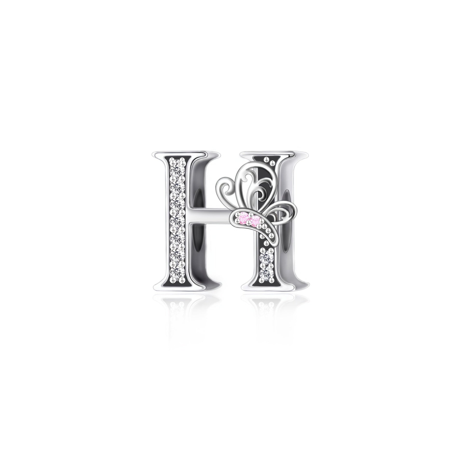 Sterling Silver Alphabet and Butterfly Charm Beads with Cubic Zirconia for Jewelry Making