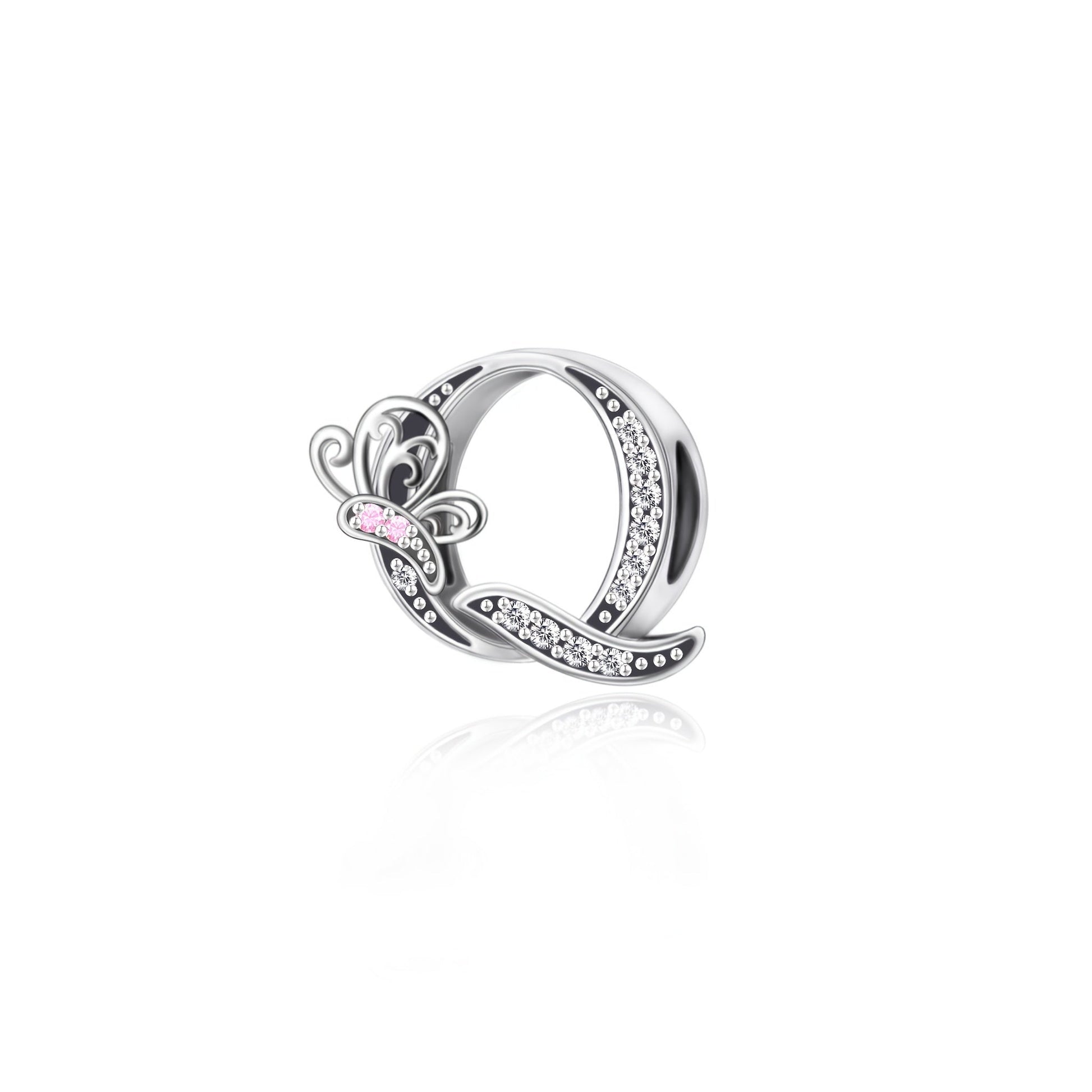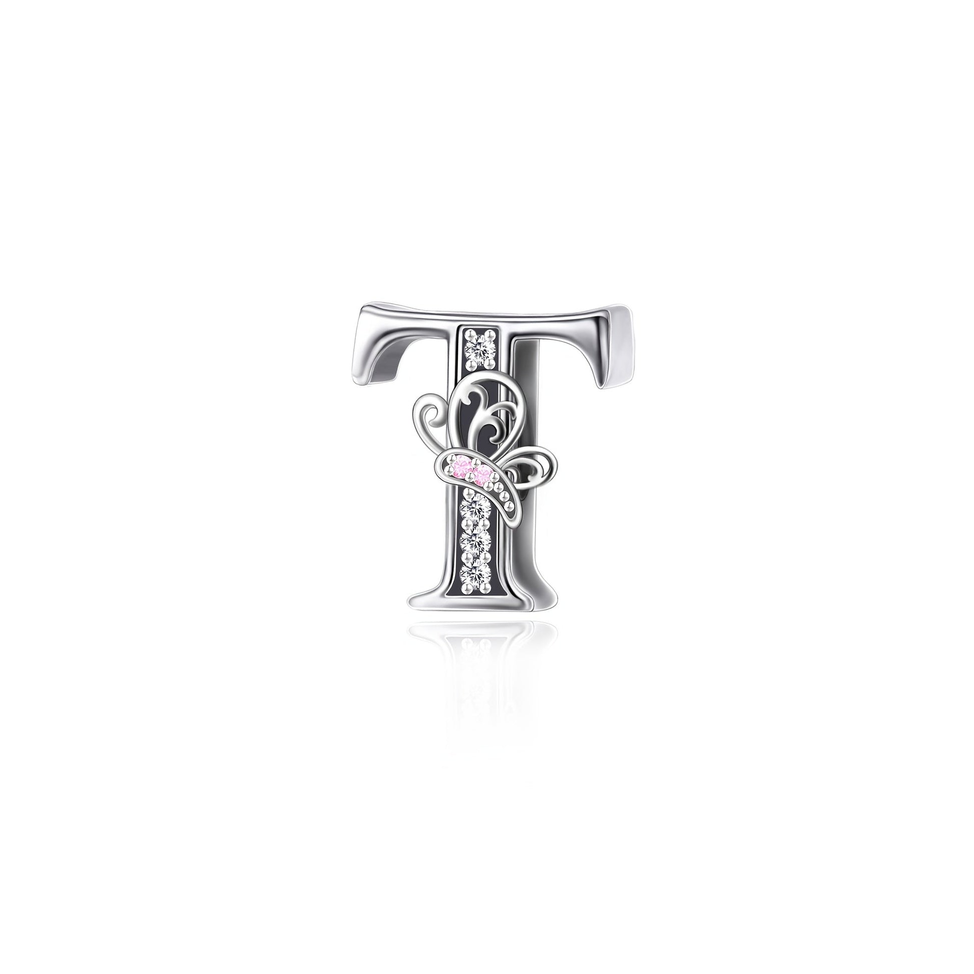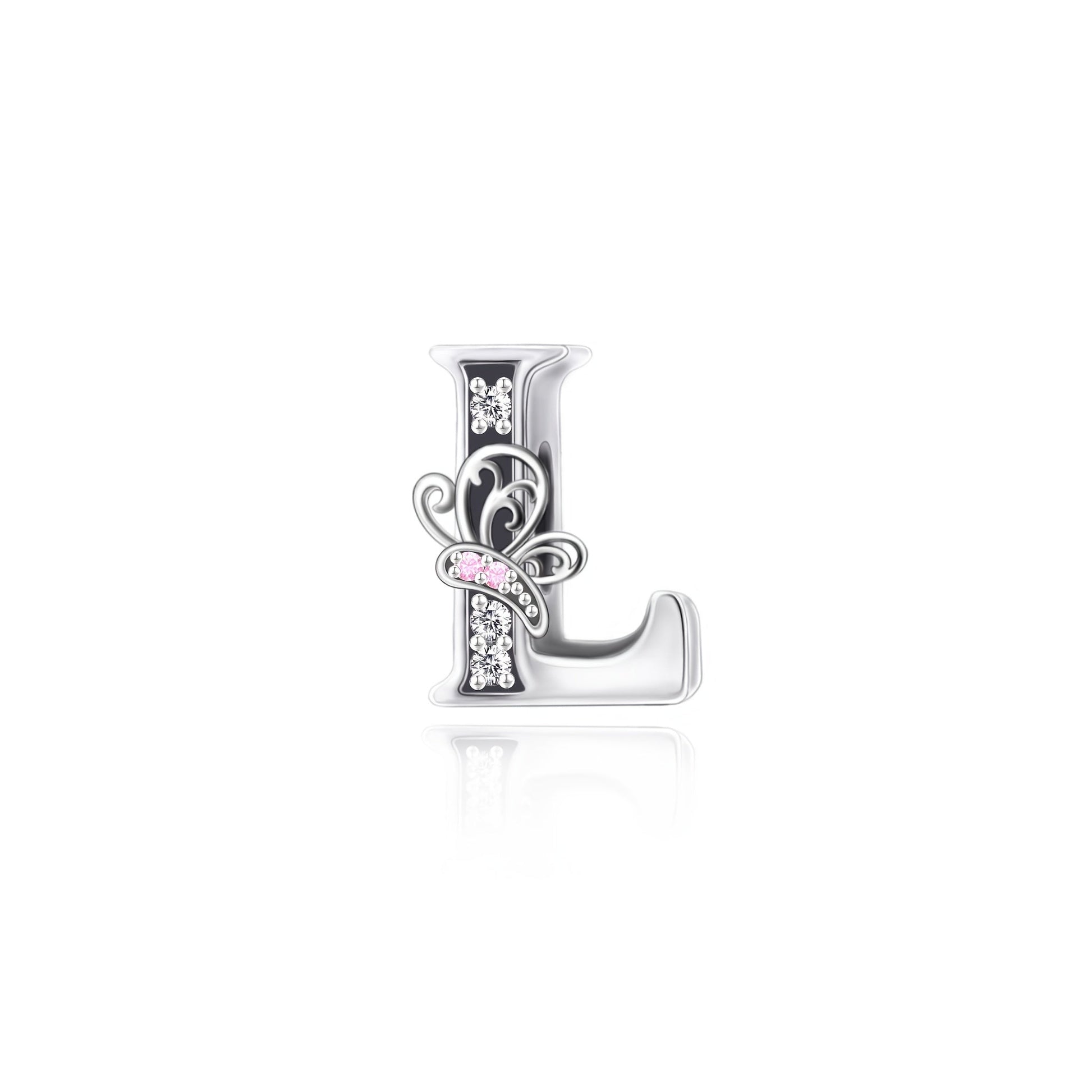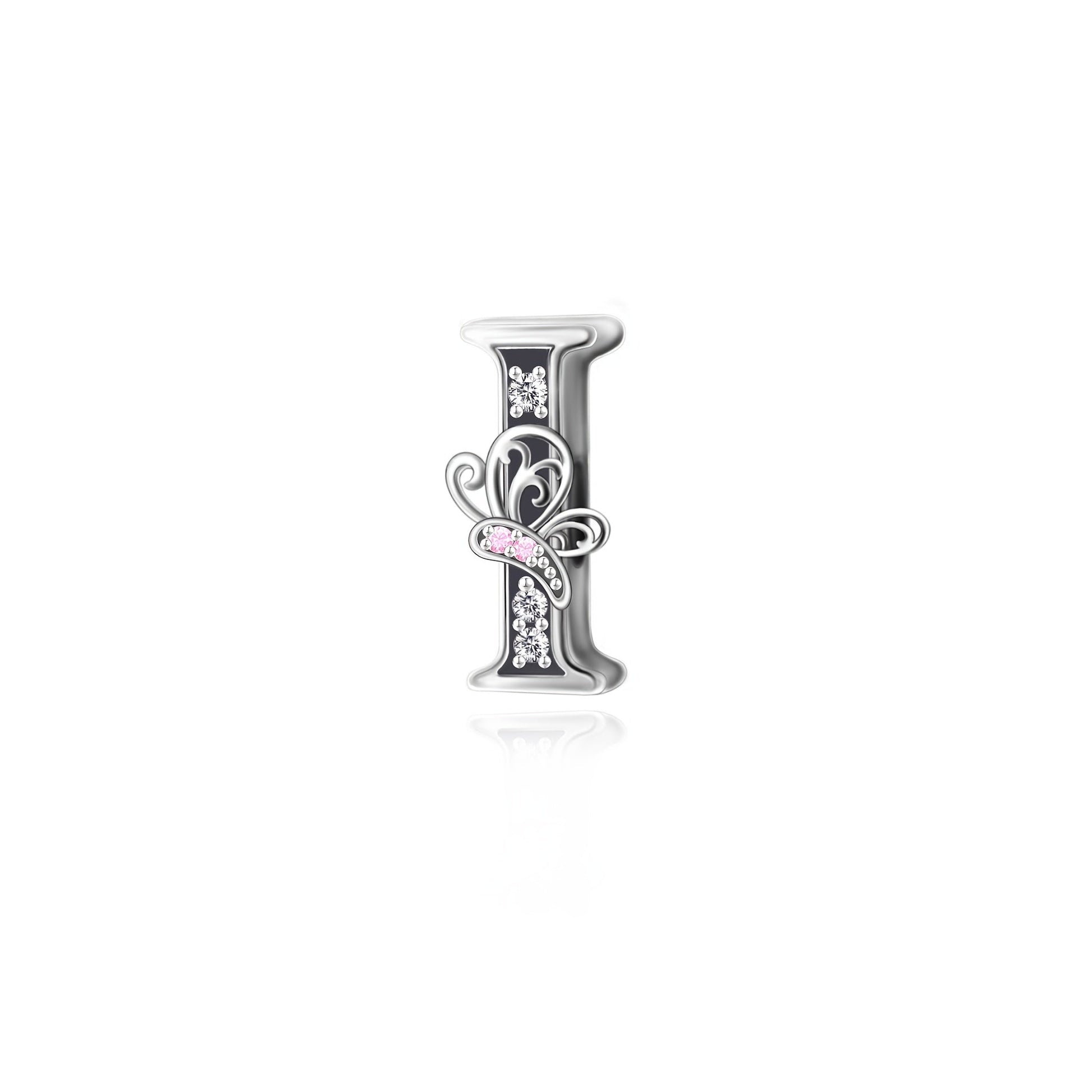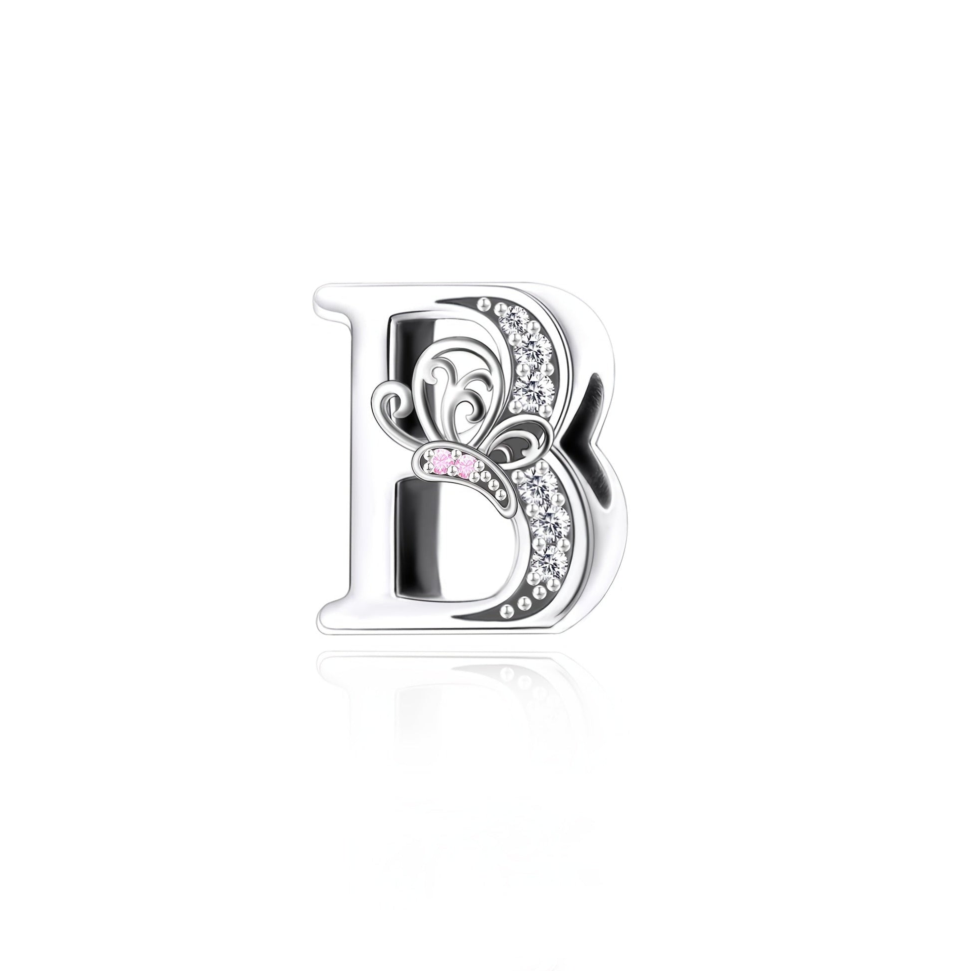 Sterling Silver Alphabet and Butterfly Charm Beads with Cubic Zirconia for Jewelry Making