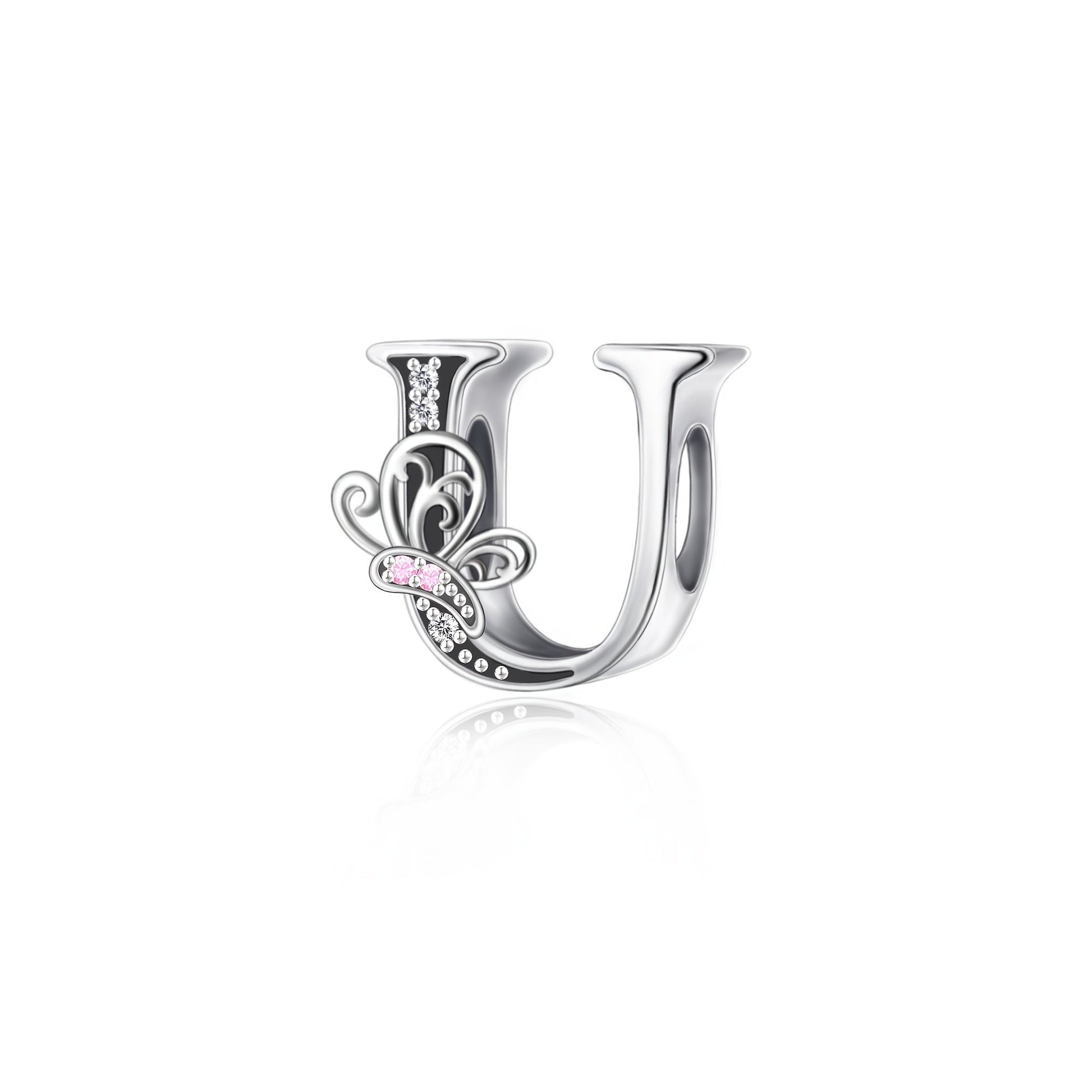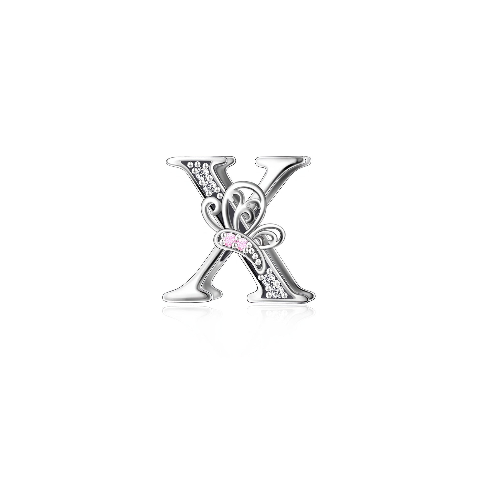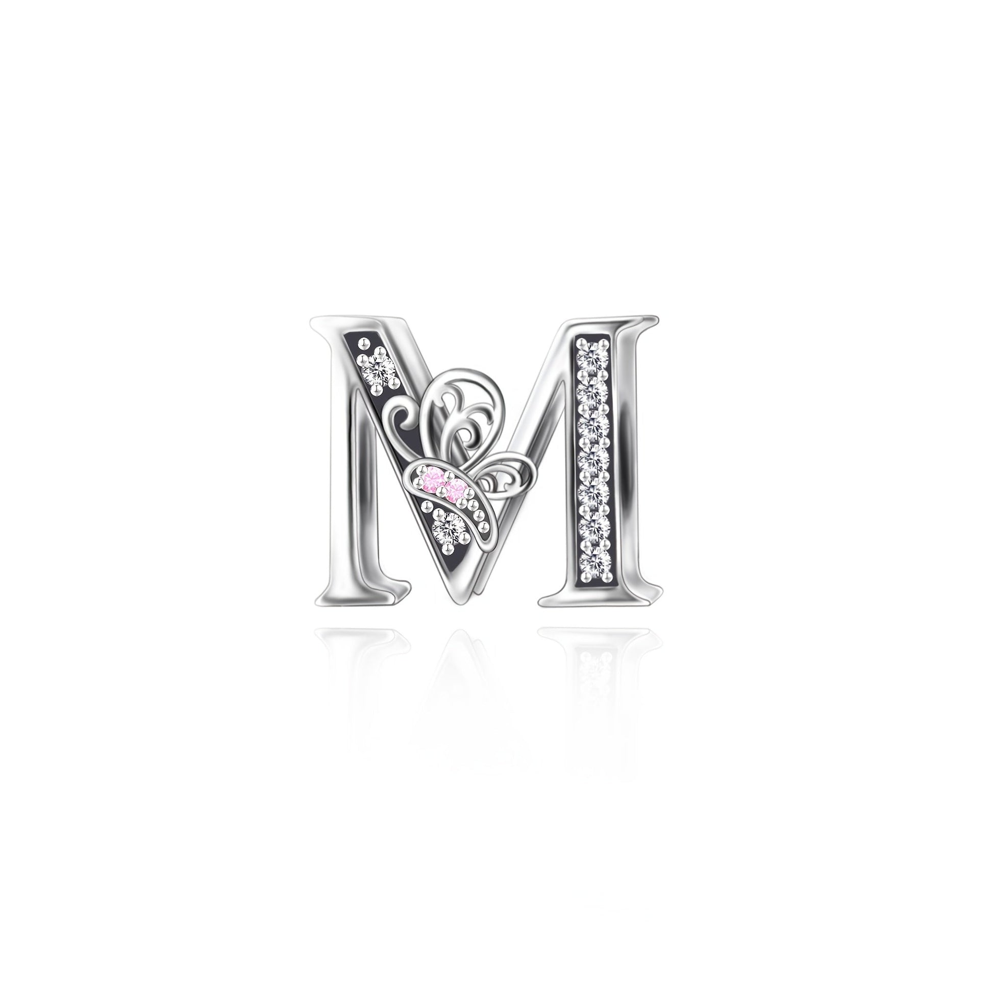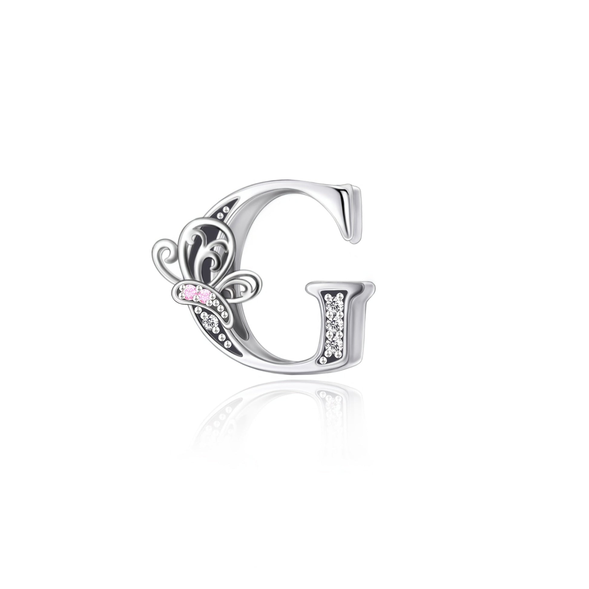 Sterling Silver Alphabet and Butterfly Charm Beads with Cubic Zirconia for Jewelry Making