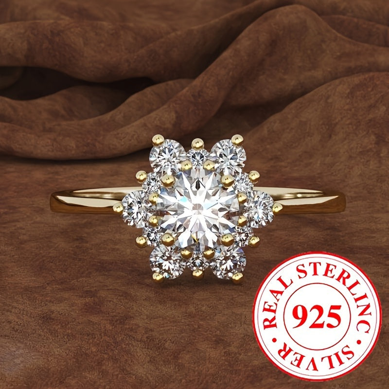Sterling Silver Flower Cluster Ring with Cubic Zirconia Snowflake Band Wedding Jewelry