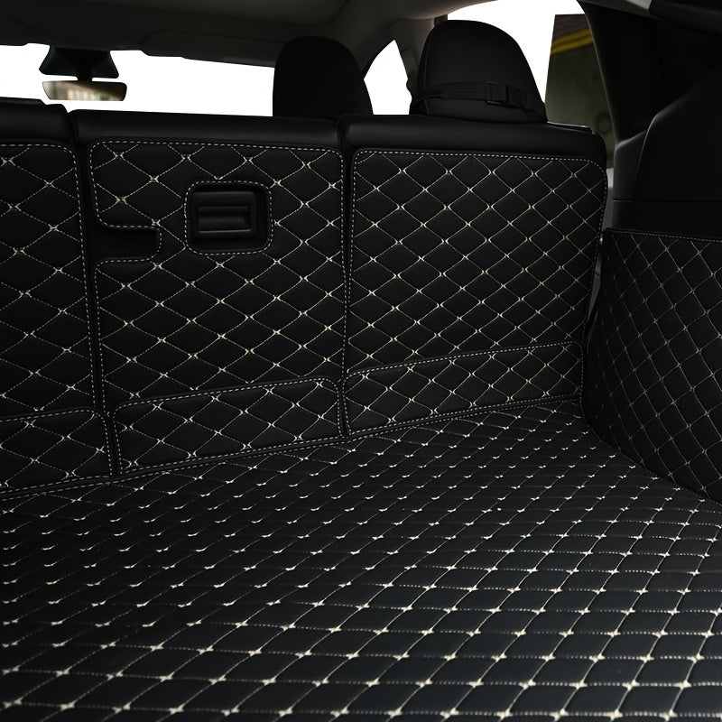 Faux Leather Car Trunk Mat Cargo Liner for SUVs Black and White Geometric
