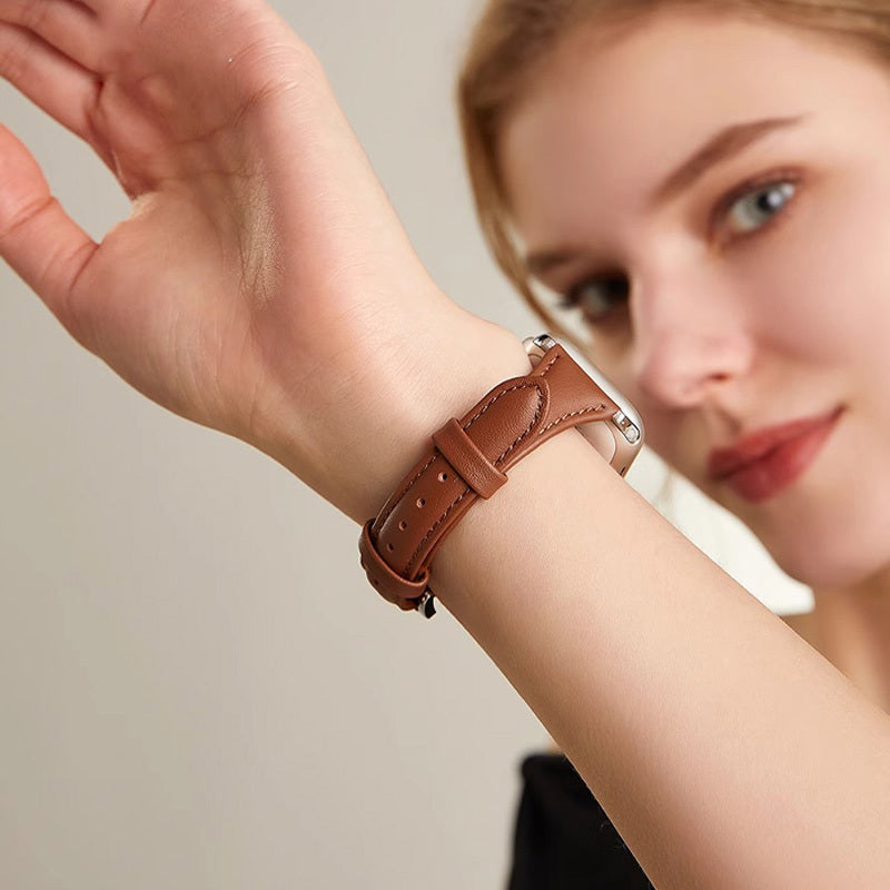 Faux Leather Smartwatch Band for Apple Watch Series 1-9 SE Ultra 38mm-49mm Adjustable