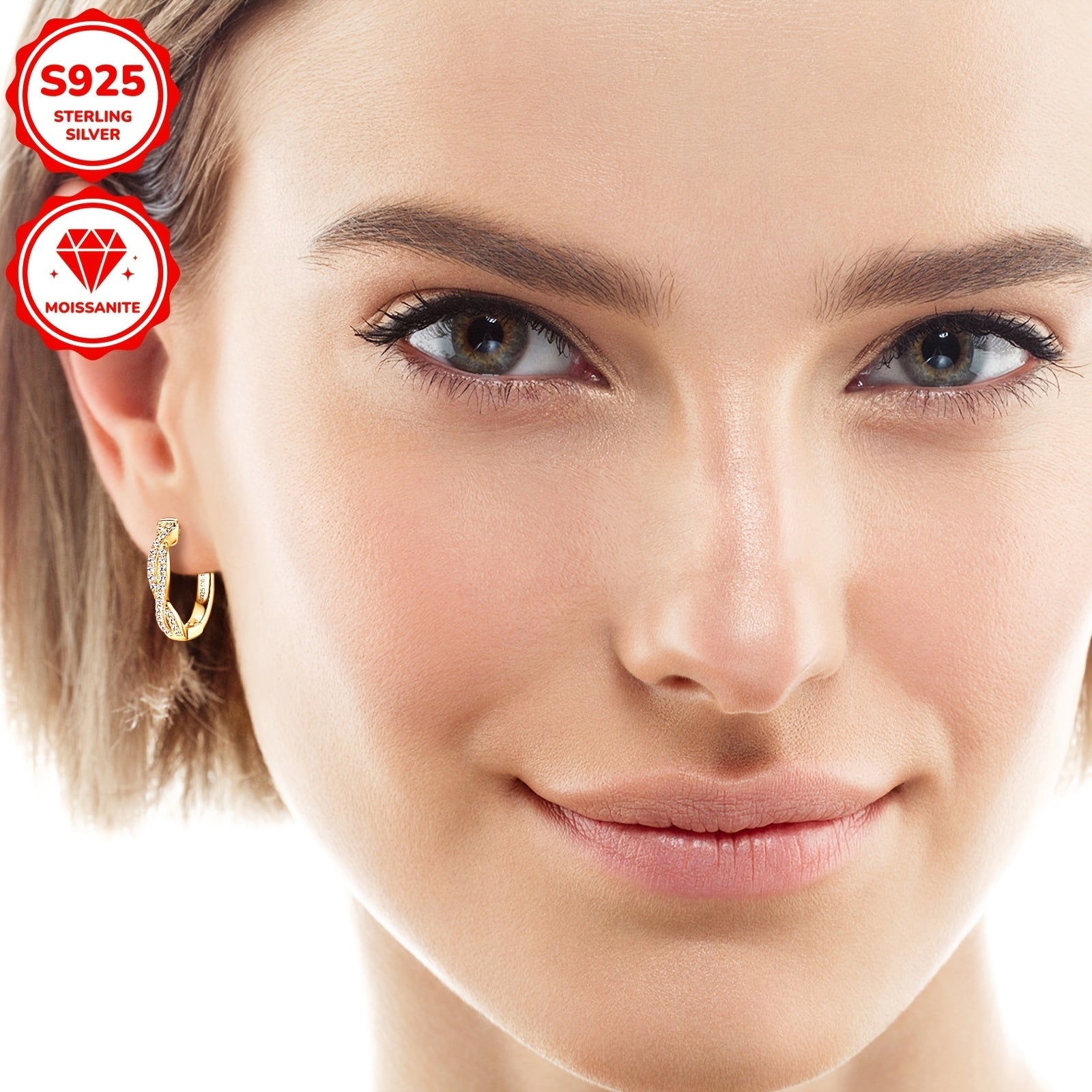 Women's Silver Hoop Earrings with Moissanite Stones 3.29g 52pcs 0.13ct Twist Design