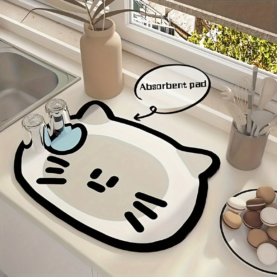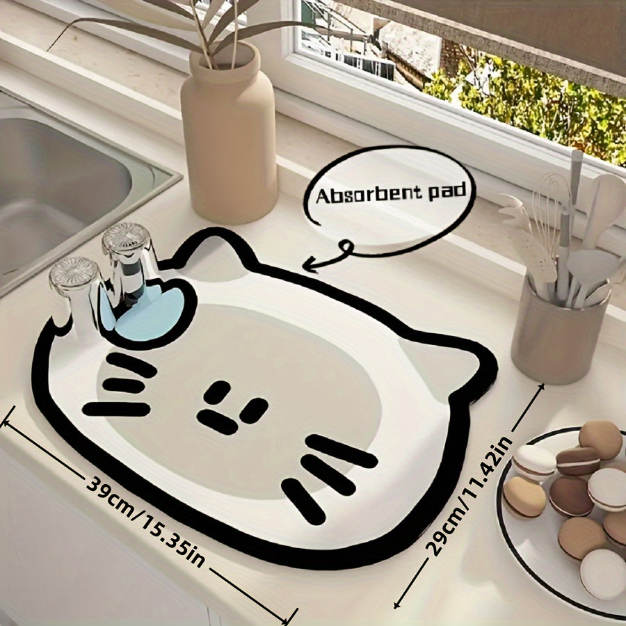 Festive Kitty Dish Mat 39cm x 15.35in Kitchen Bathroom Non-Slip Durable