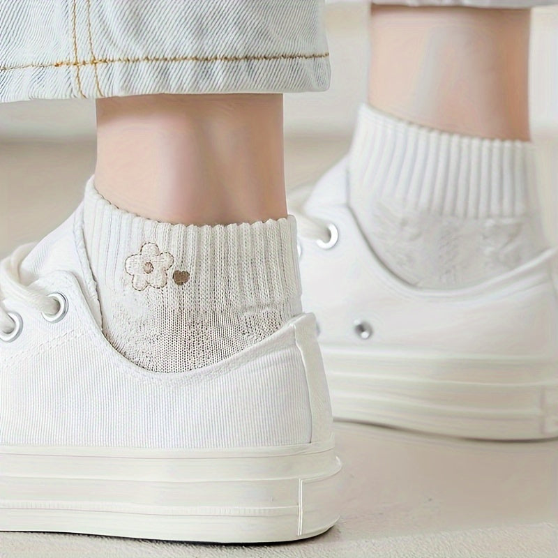 Women's Ankle Socks 5 Pairs Breathable Knit Short Socks Cartoon Patterns Embossed