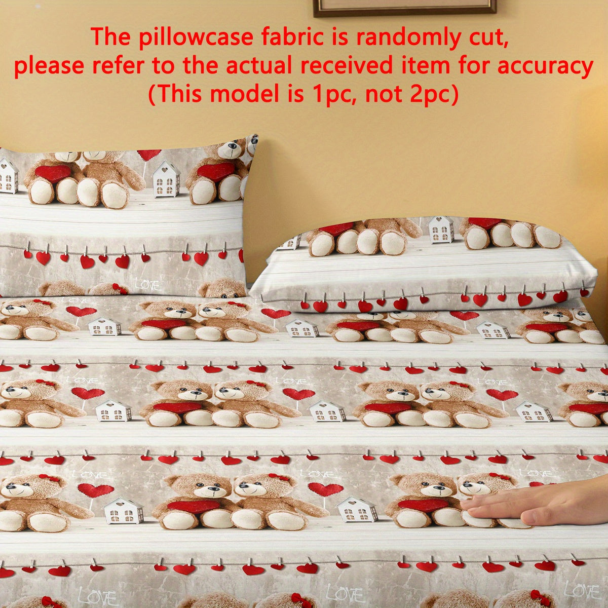 Fleece Pillowcase with Cute Bear Couple Print Soft Sealed Pocket Bedroom Bedding