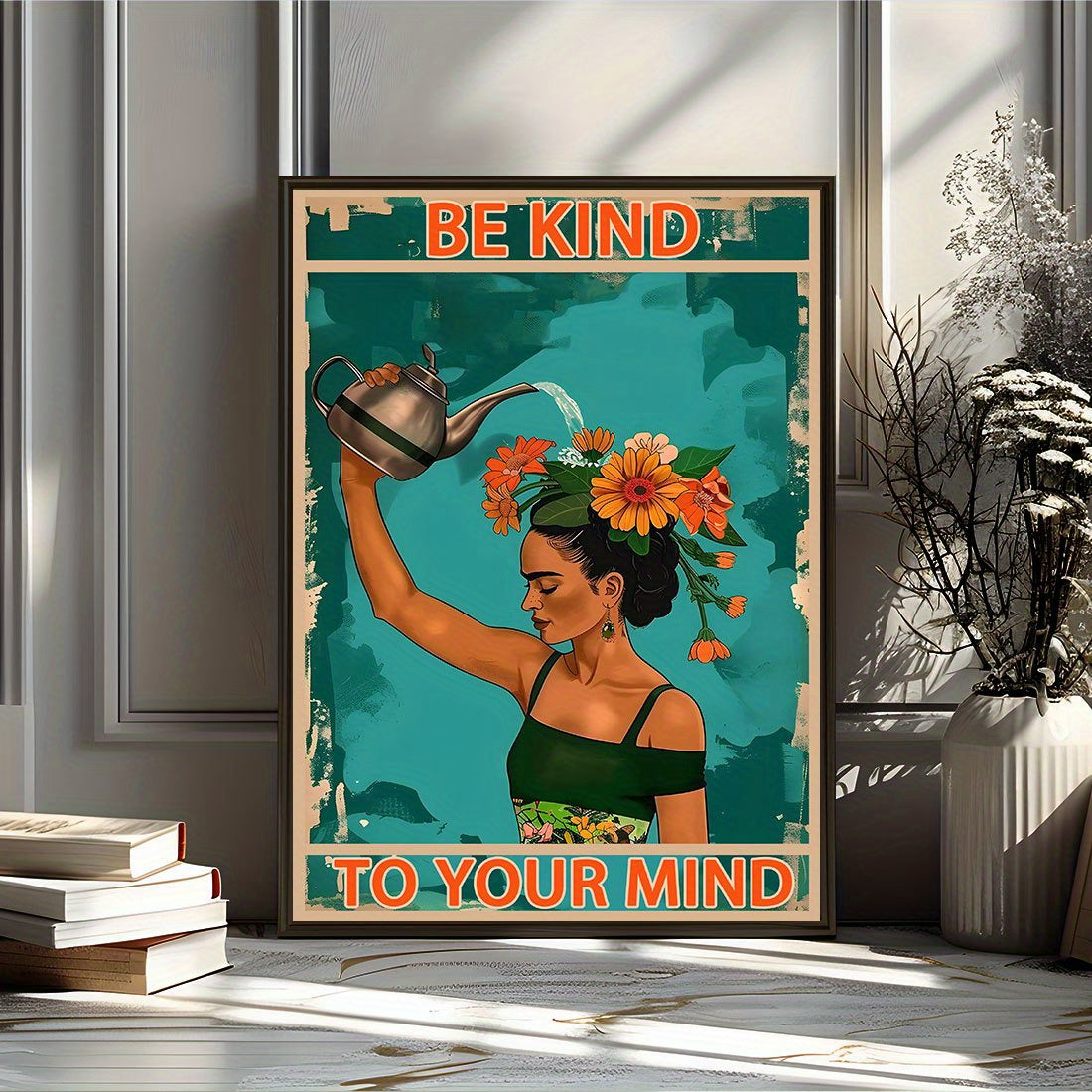 Floral Canvas Wall Art Print for Living Room Bedroom Home Office Fall Winter Portrait Style