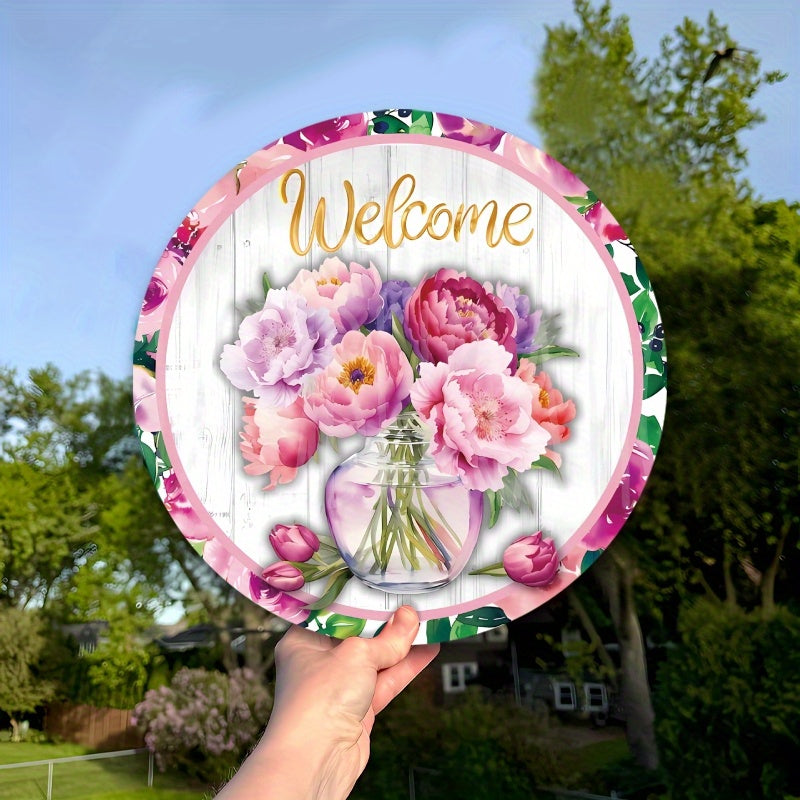 Round Floral Acrylic Welcome Door Sign 20cm Porch Decor Housewarming Gift