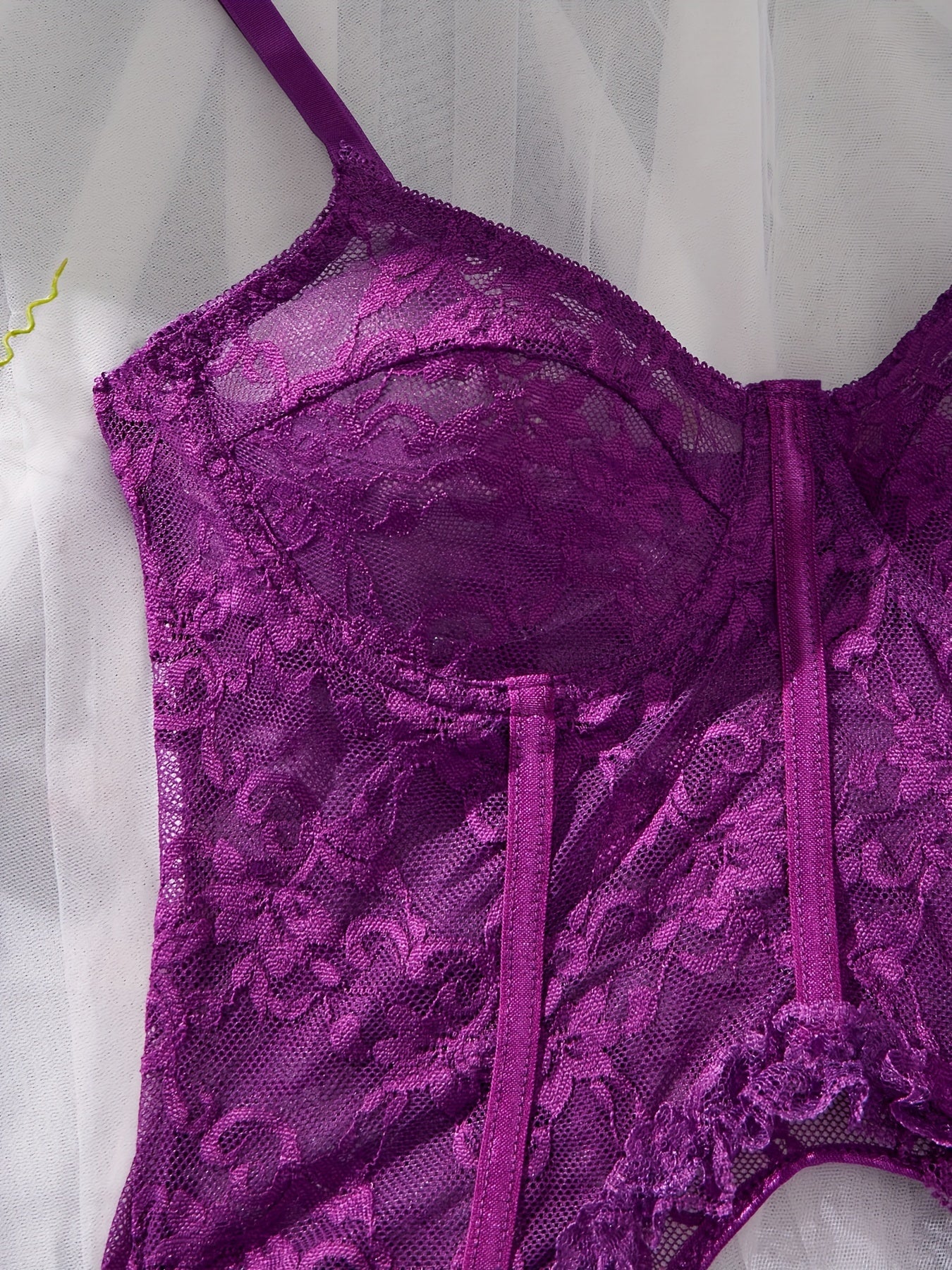 Women's Floral Lace Lingerie Set with Cami Bra Garter Belt and Strappy Thong