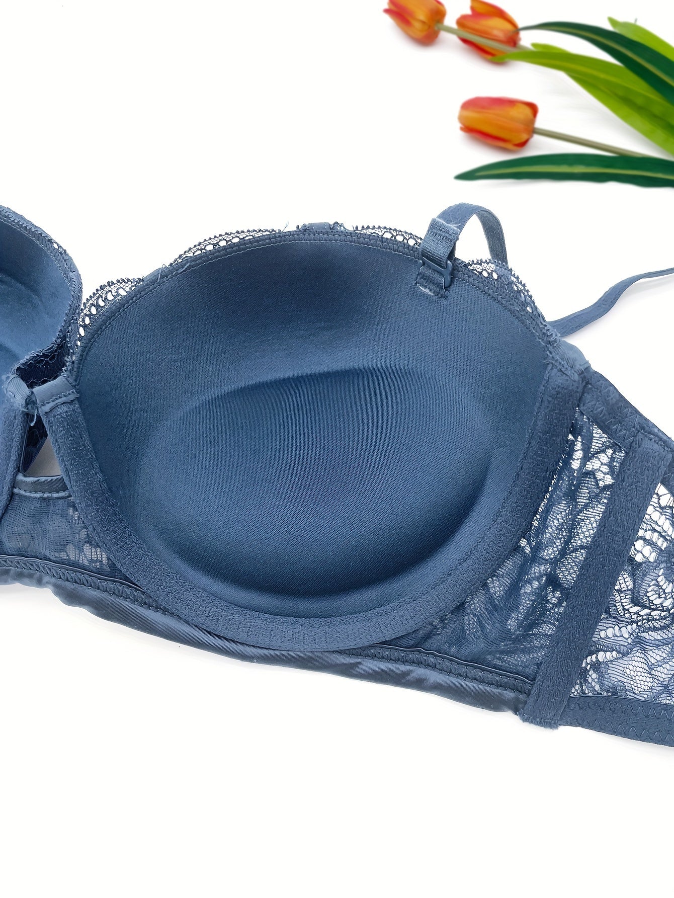 Women's Floral Lace Embroidered Push-Up Lingerie Set with Adjustable Bralette and Panty