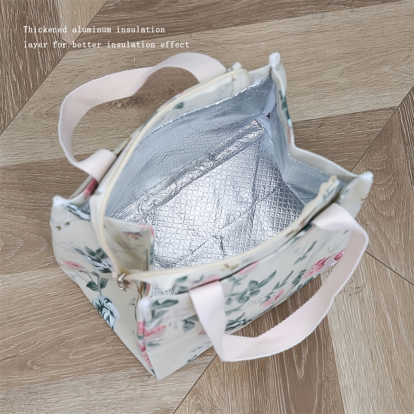 Insulated Floral Lunch Bag with Aluminum Foil, Thermal Tote for Picnics and Travel