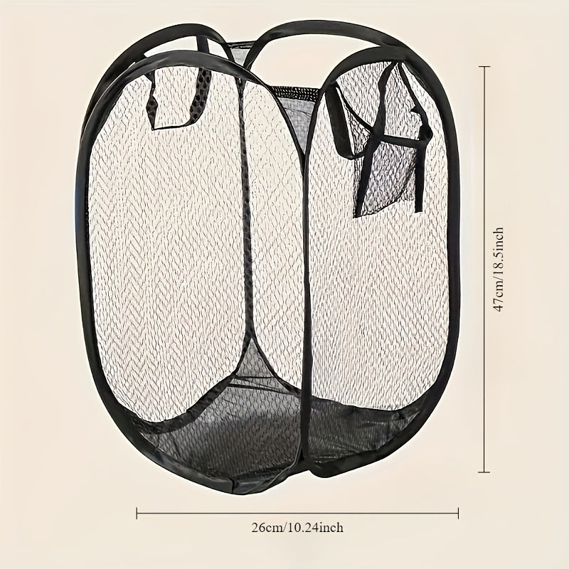 Foldable Polyester Mesh Laundry Basket with Handles, High Capacity, Lightweight